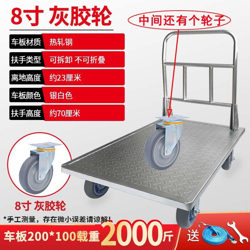 200*100 [5-wheel 8-inch gray rubber wheel] silver super heavy vehicle fixed armrest