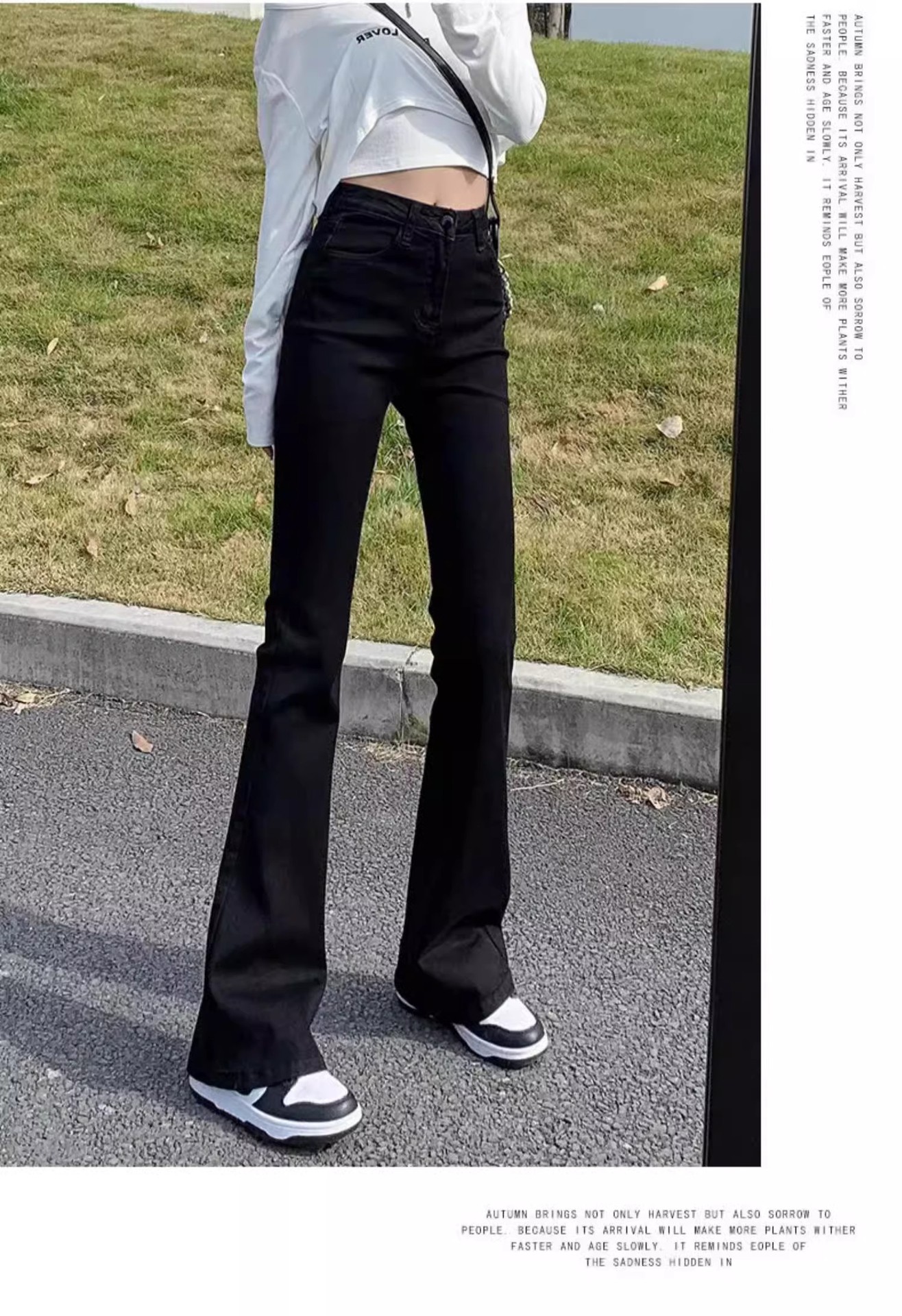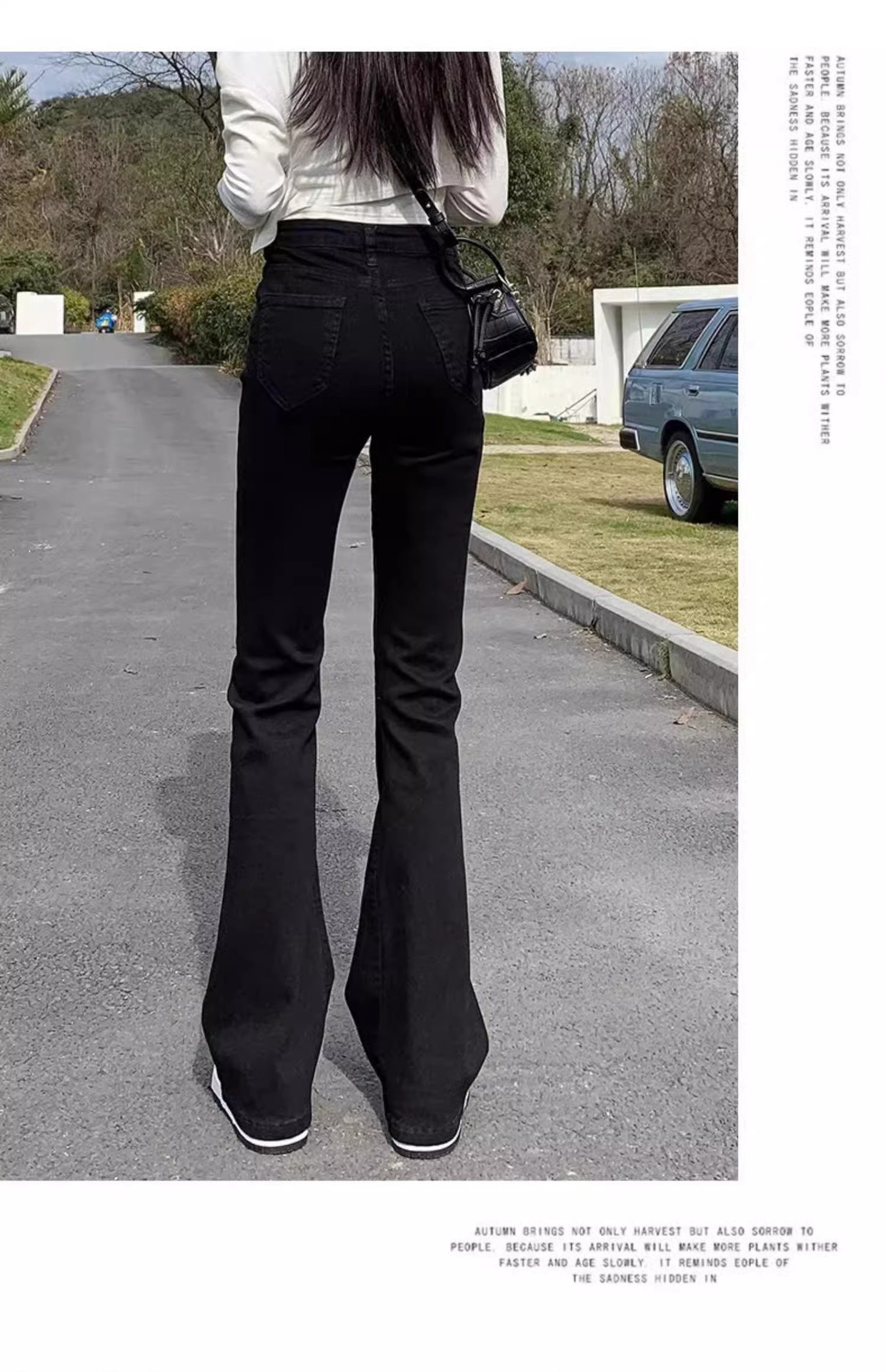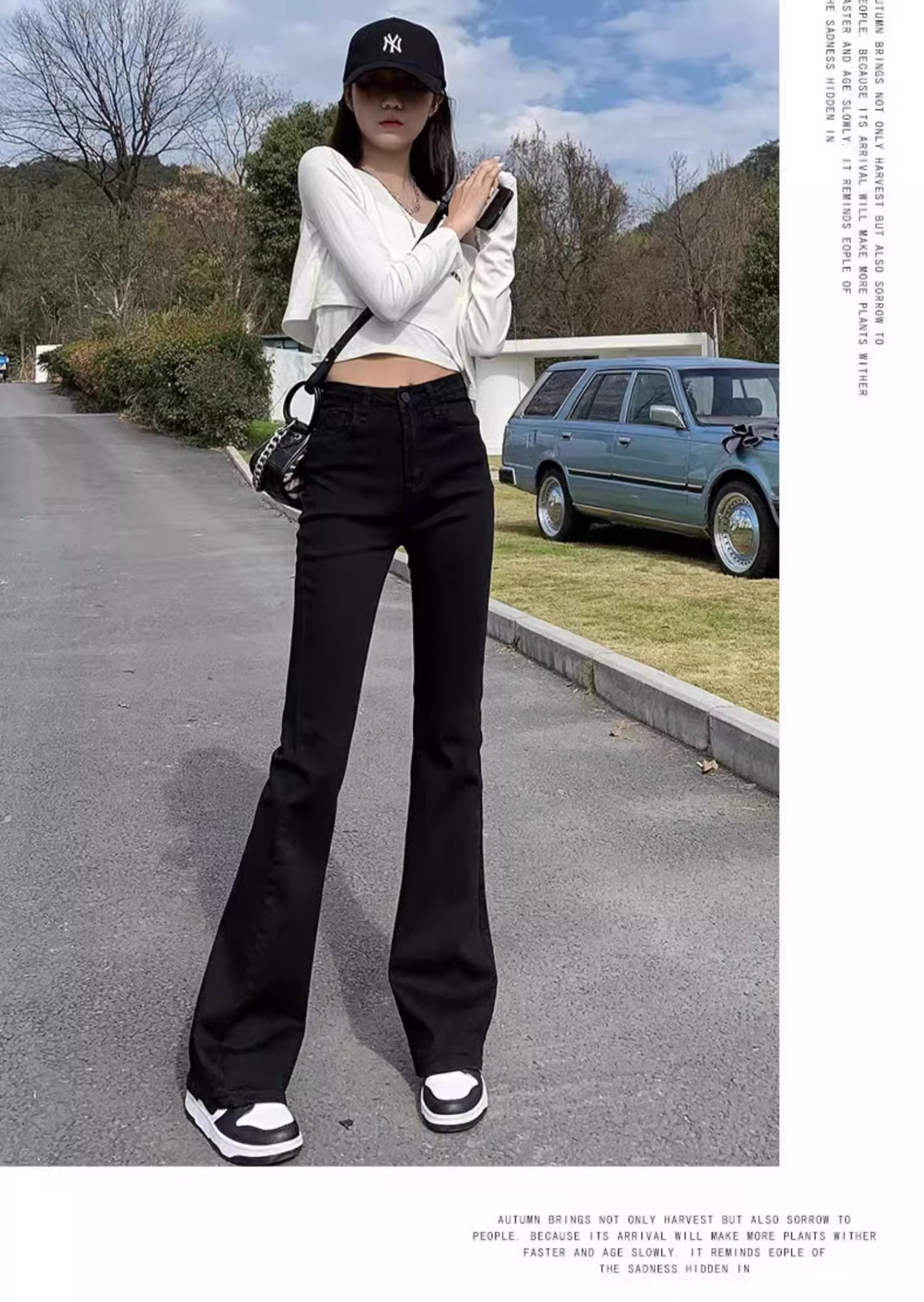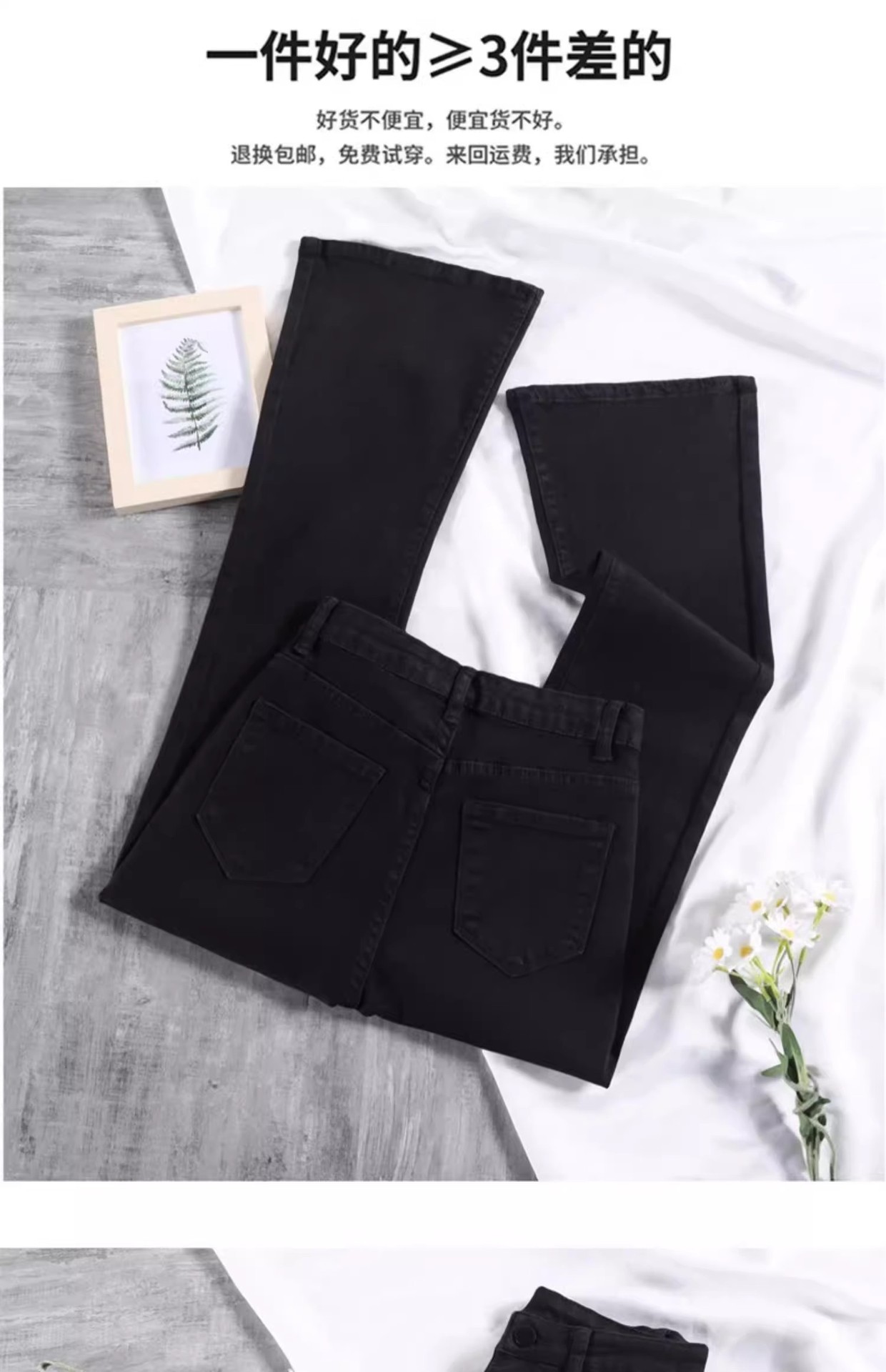 Black Stretch Micro Horn Jeans Women's Spring New High Waist plus size Chubby mm200 Jin Spice Girls Straight Pants