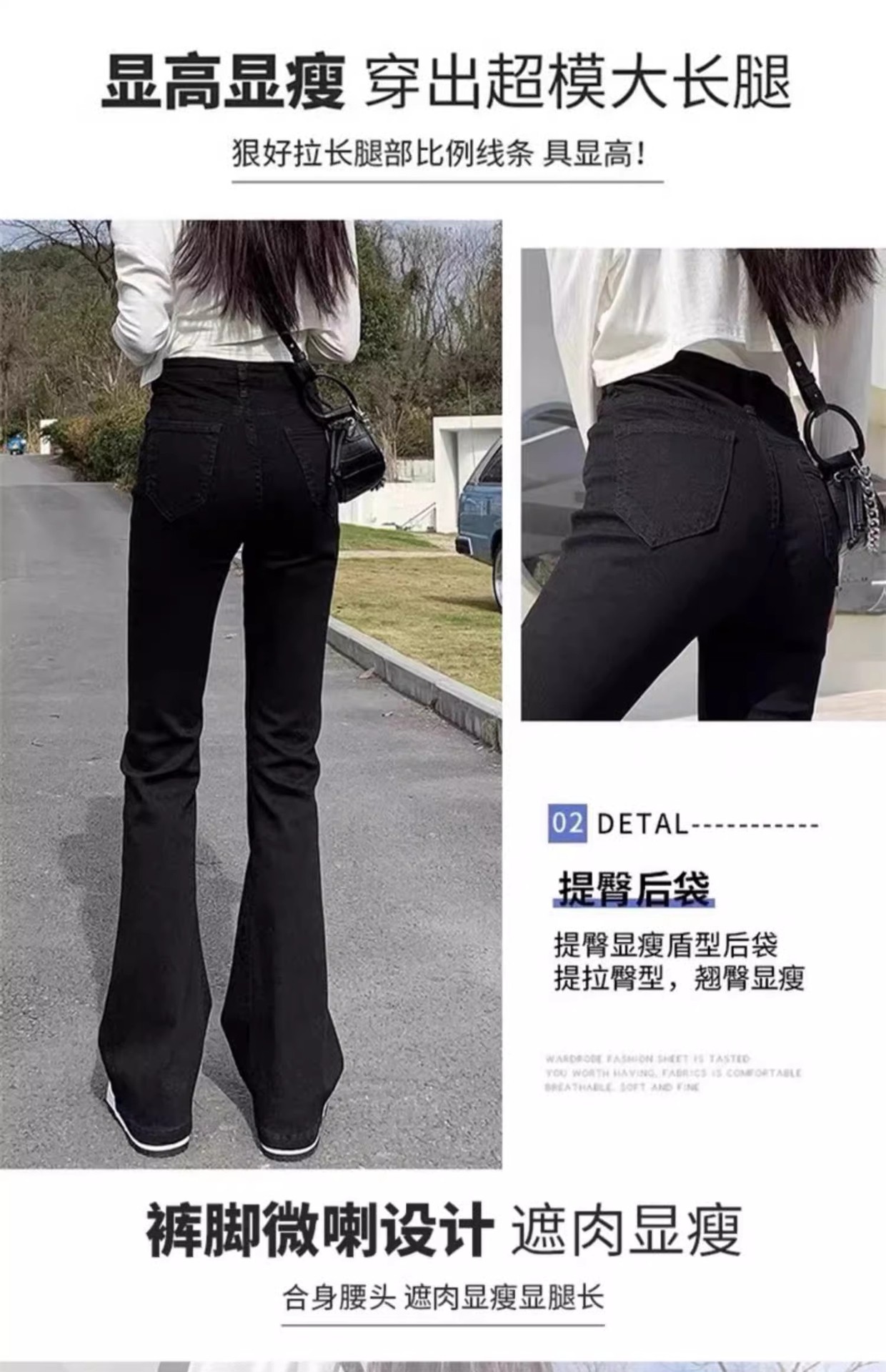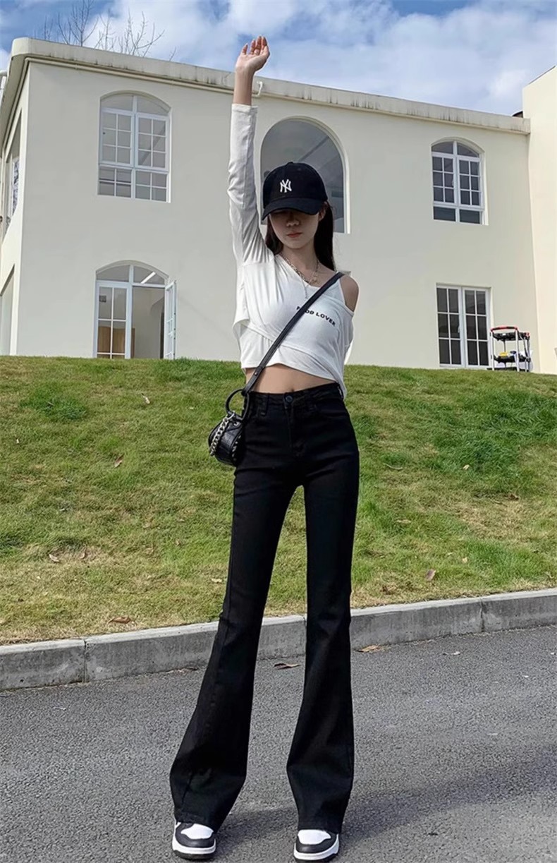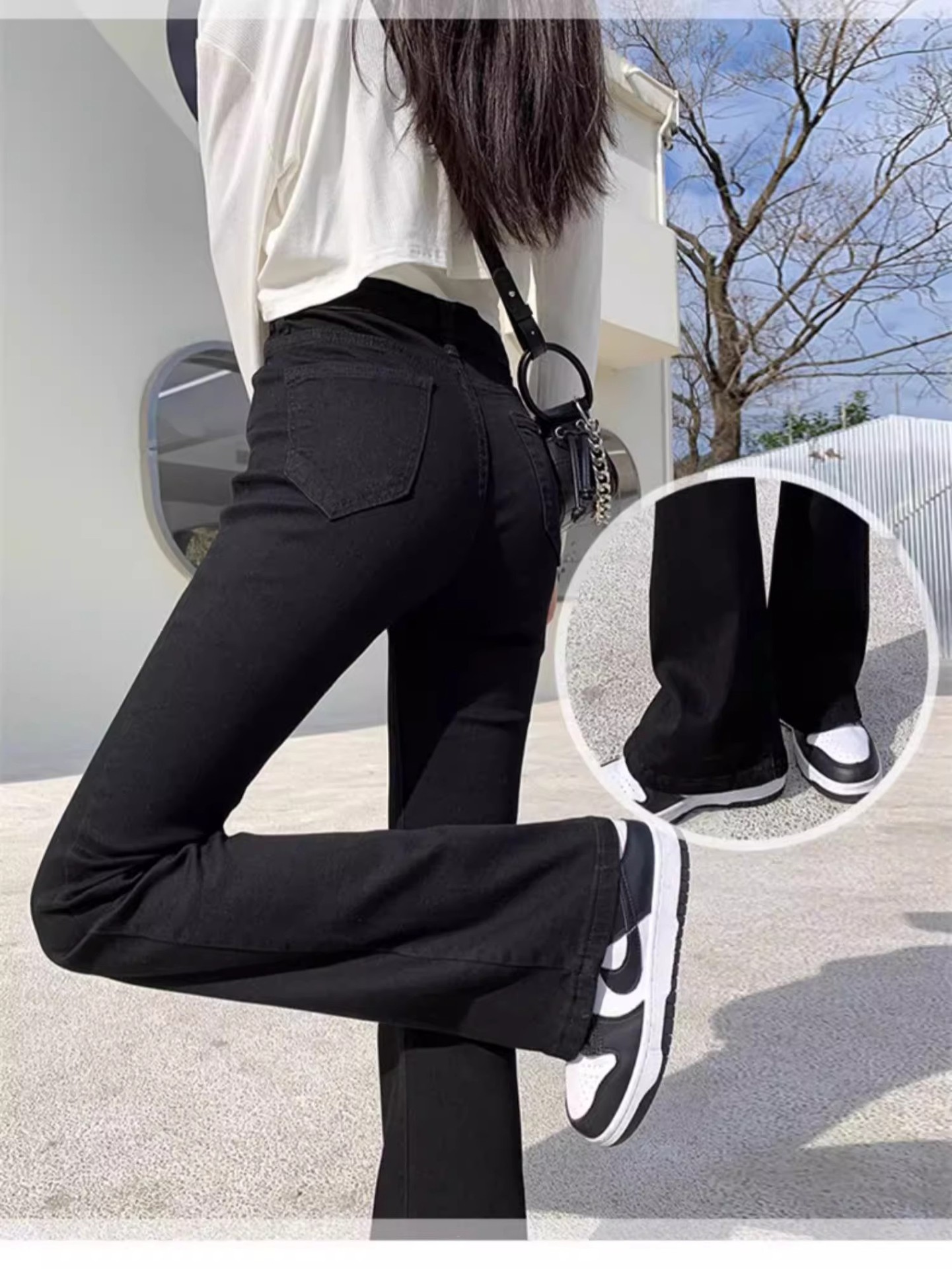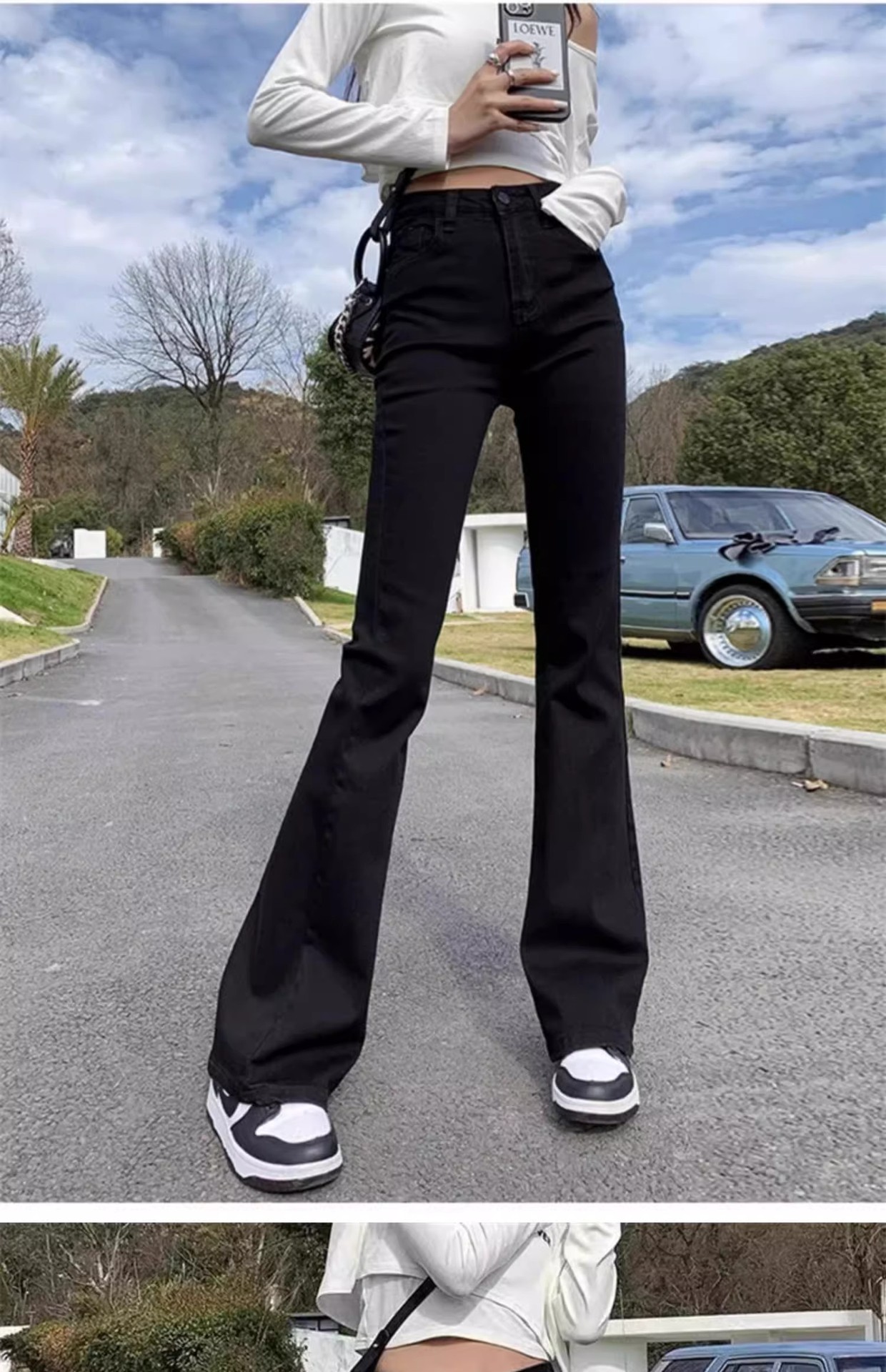 Black Stretch Micro Horn Jeans Women's Spring New High Waist plus size Chubby mm200 Jin Spice Girls Straight Pants
