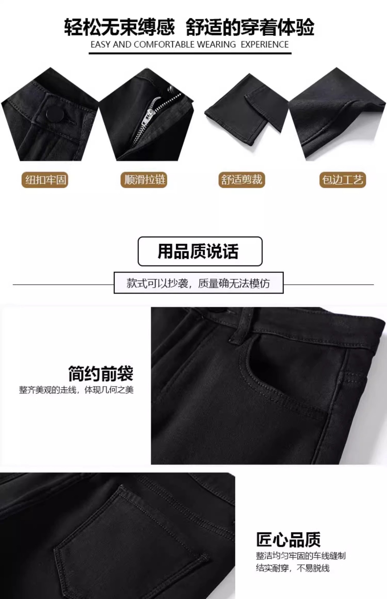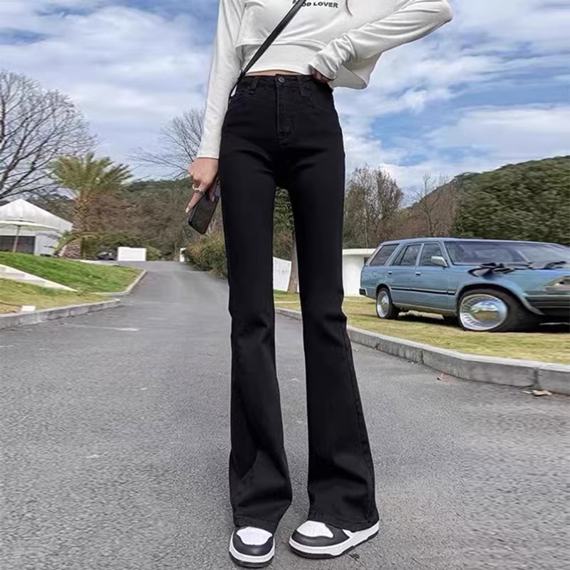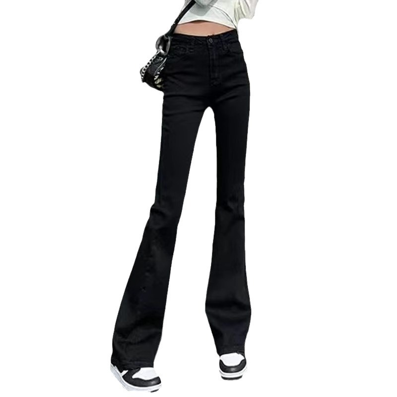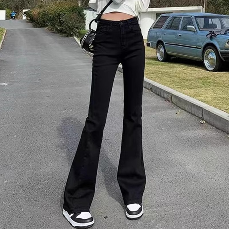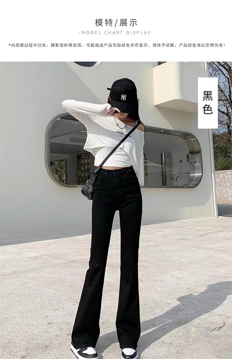 Black Stretch Micro Horn Jeans Women's Spring New High Waist plus size Chubby mm200 Jin Spice Girls Straight Pants
