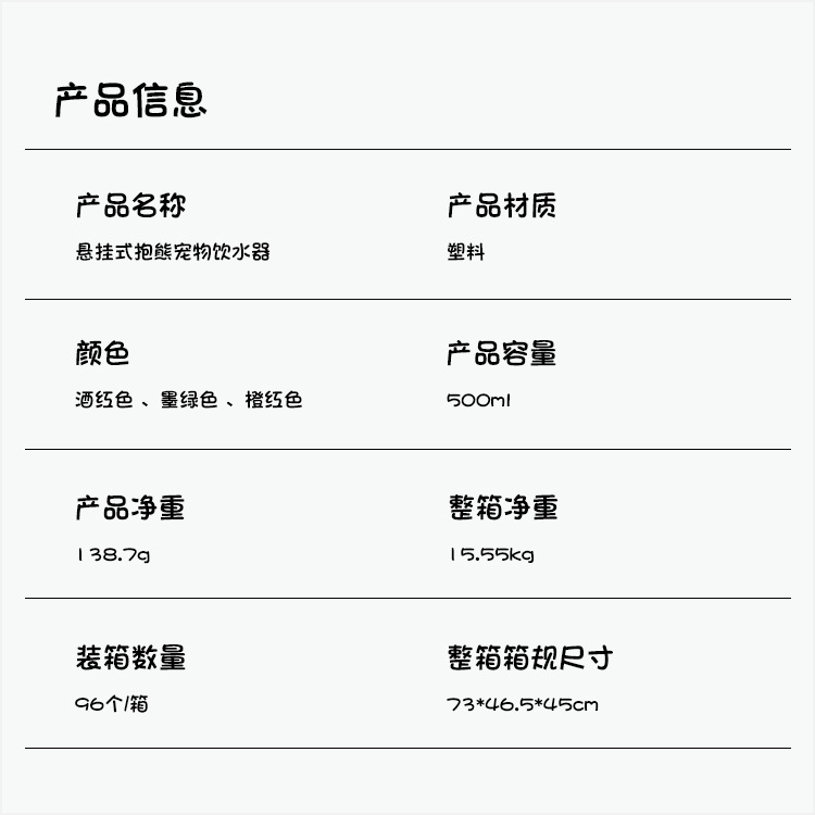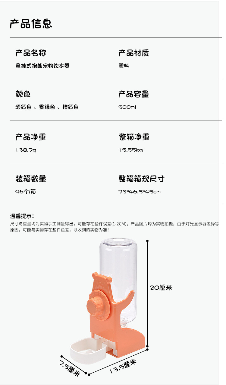 Hanging Pet Drinker Small Pet Feeding Hamster Rabbit Preventing Tipping Hanging Pet Automatic Water Feeder