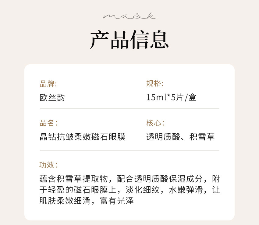 Ousiyun crystal diamond anti-wrinkle soft magnetic eye mask 15ml*5 pieces