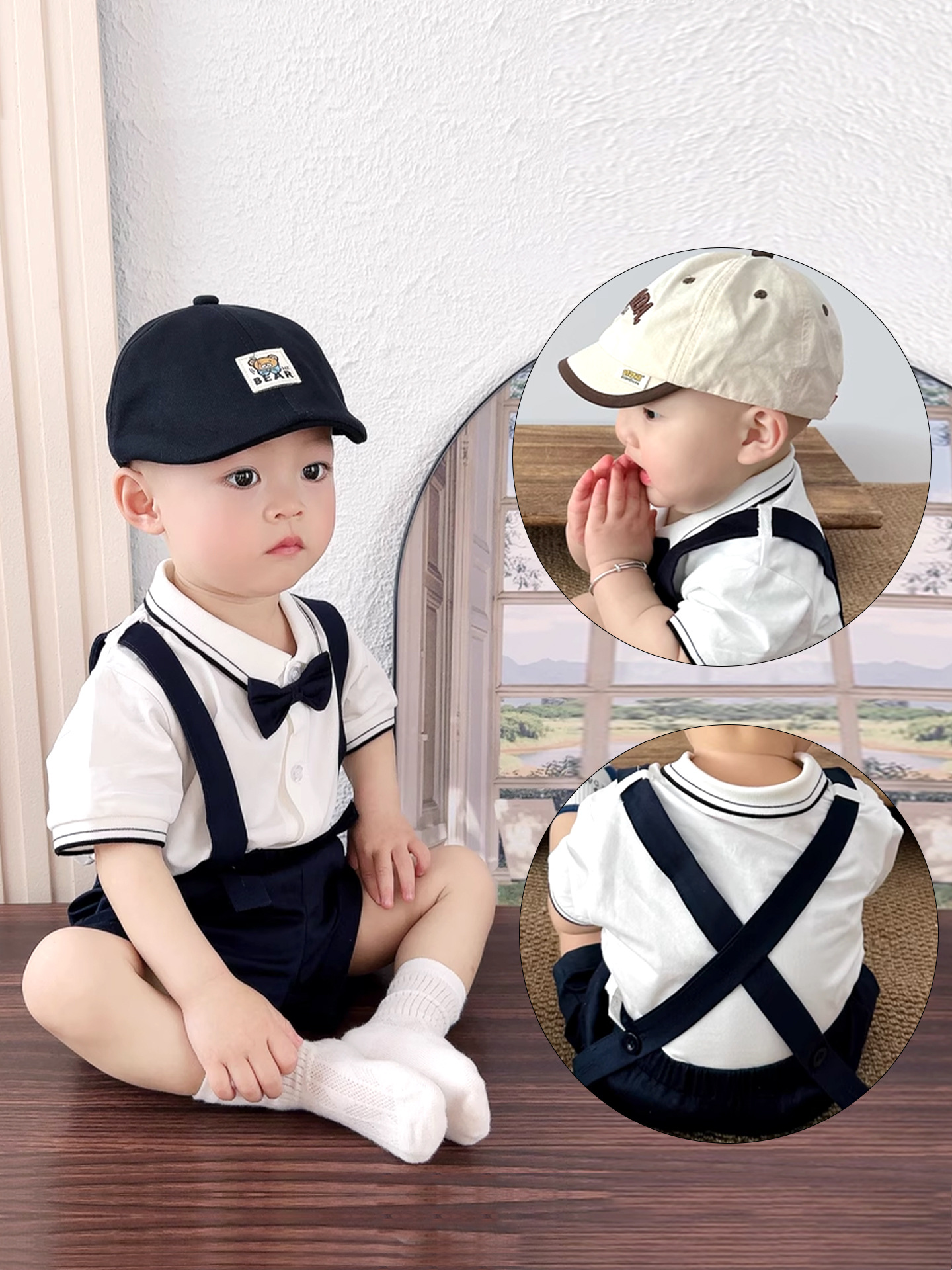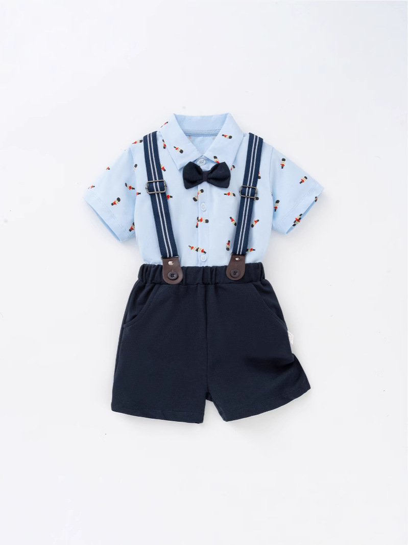 Short-sleeved suit [little brother bing suspender suit]