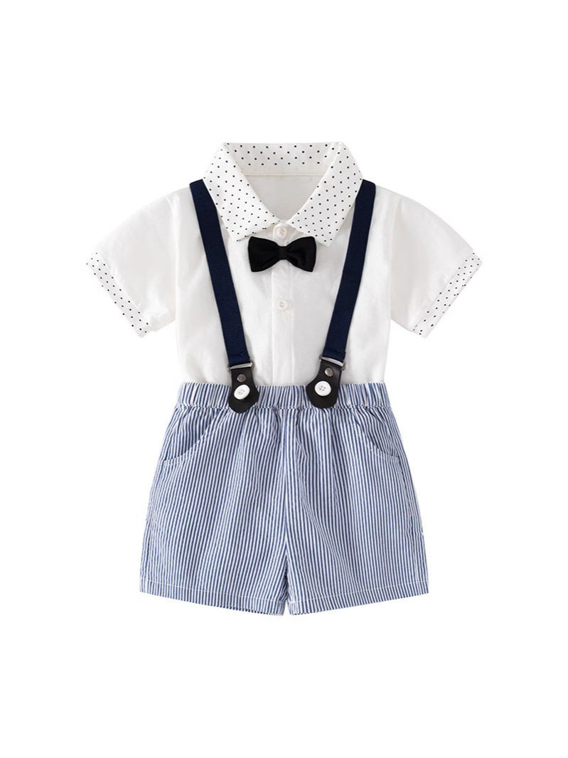 Short-sleeved suit [white blue gentleman strap suit]]