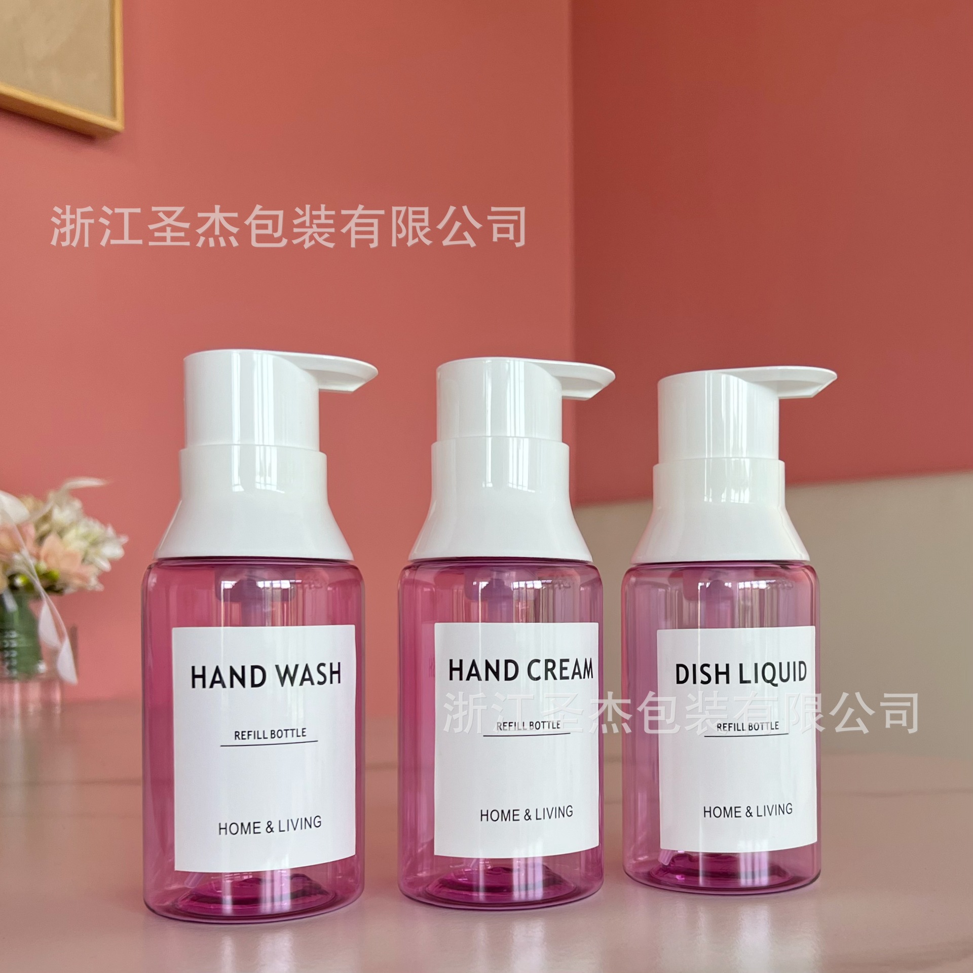 Pm300ml (default bare bottle without stickers); transparent pink; pet