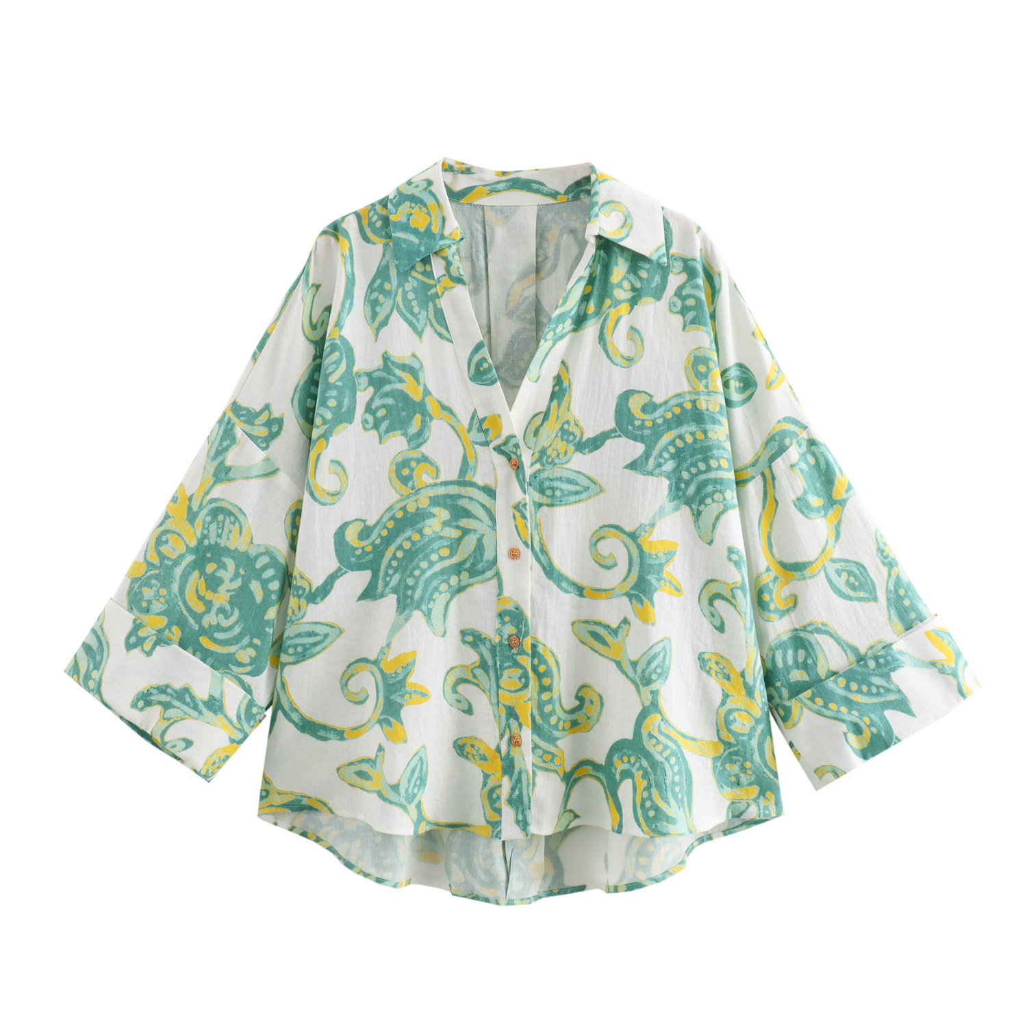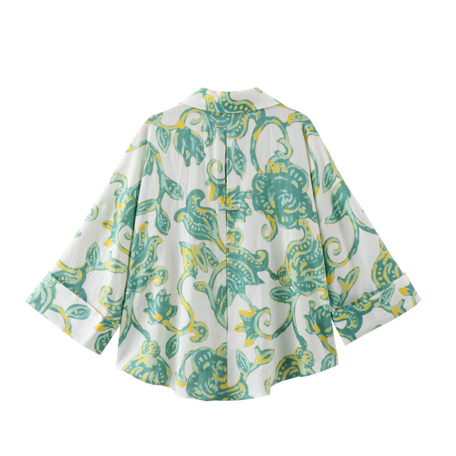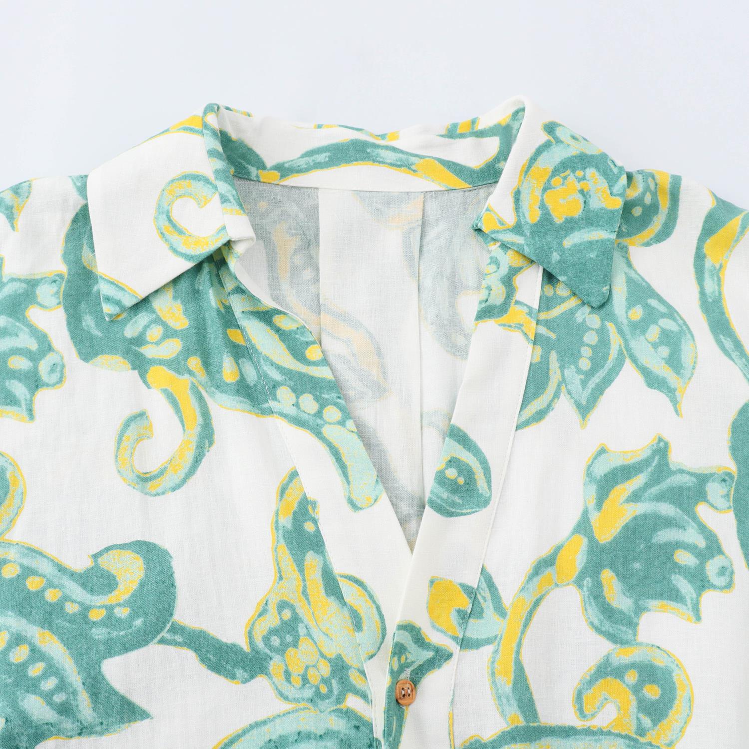 Taop&Za New Summer Women's Holiday Style Linen Blended Printed Short Shirt 8392444