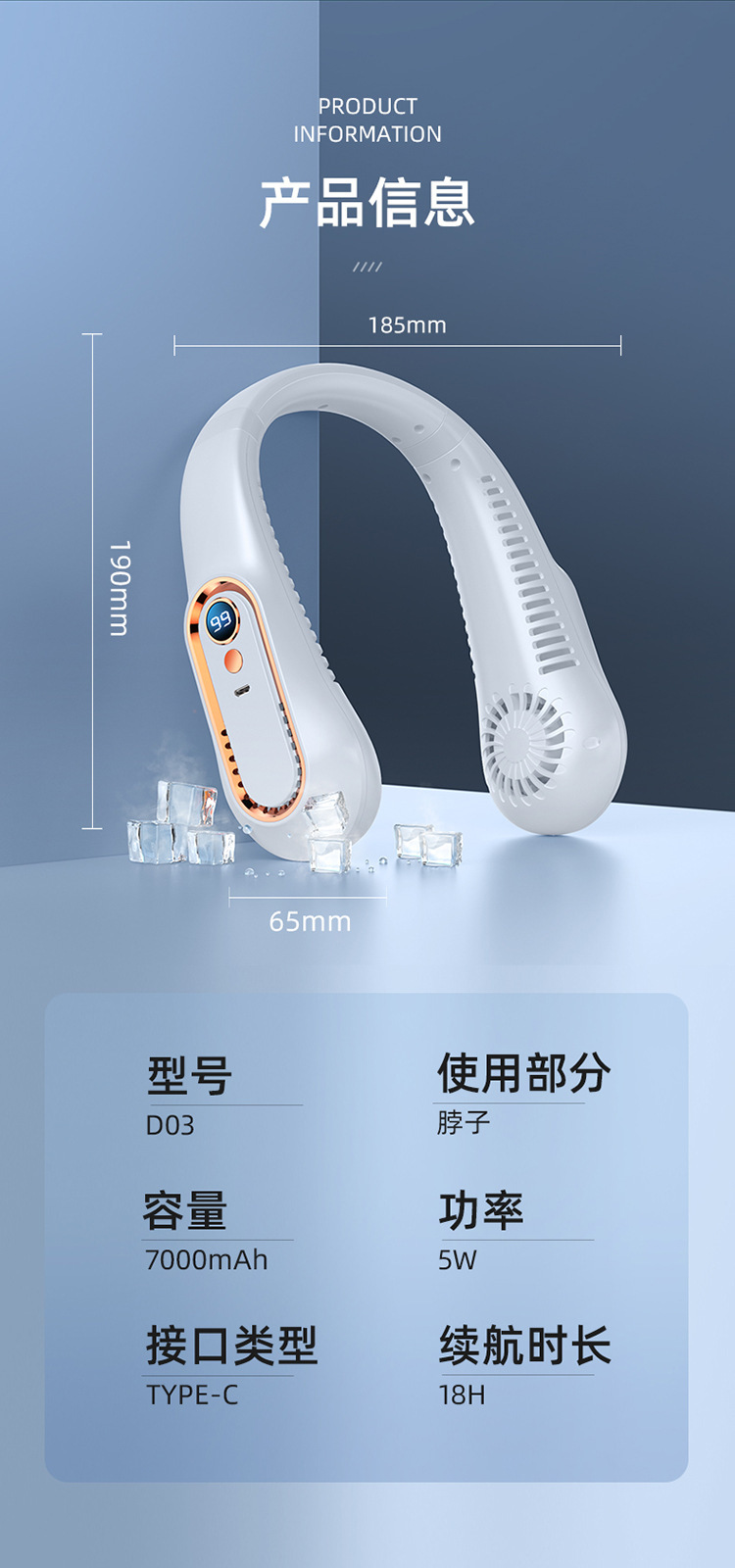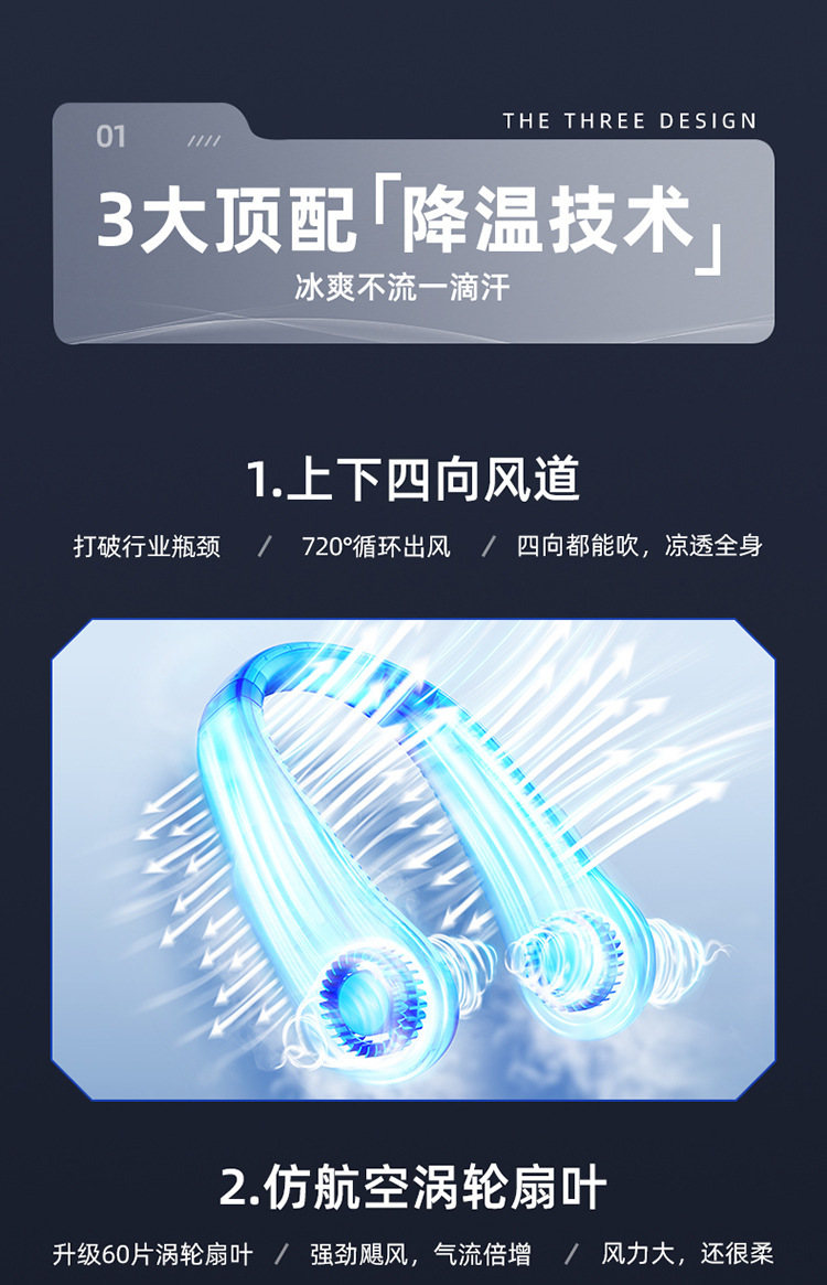 Cross-Border New Leafless Outdoor Small Fan USB Mini Portable Charging Digital Display Silent Anti-Pinch Hanging Neck Fan