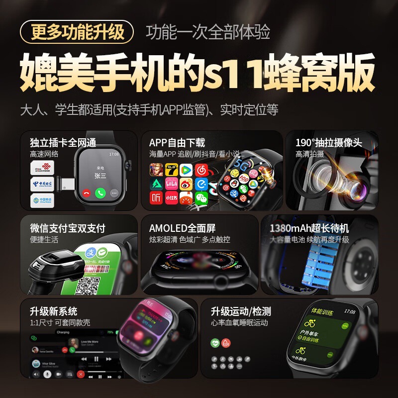 Sim card supported [student full netcom version - black] front camera + wechat messaging + location tracking + alipay + class mode disabled