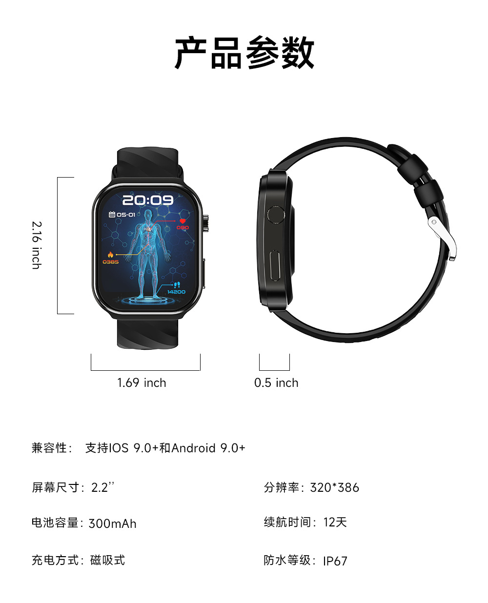 Huaqiang North New Sports Watch 3D Curved Screen 2.2 "Bluetooth Call Health Monitoring U13 Smart Watch