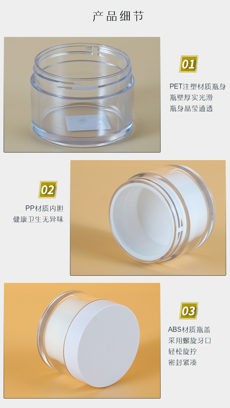 in stock 50G Thick Wall Cream Bottle PET Double Layer Cream Bottle Cosmetic High-grade Eye Cream Bottle Wide Mouth Bottling Jar