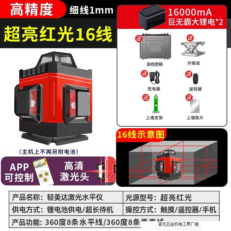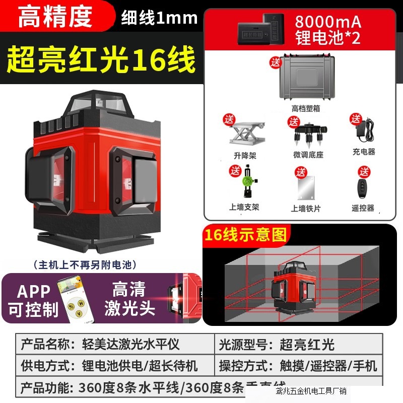 16-wire super bright red light giant 2 batteries + full set of accessories