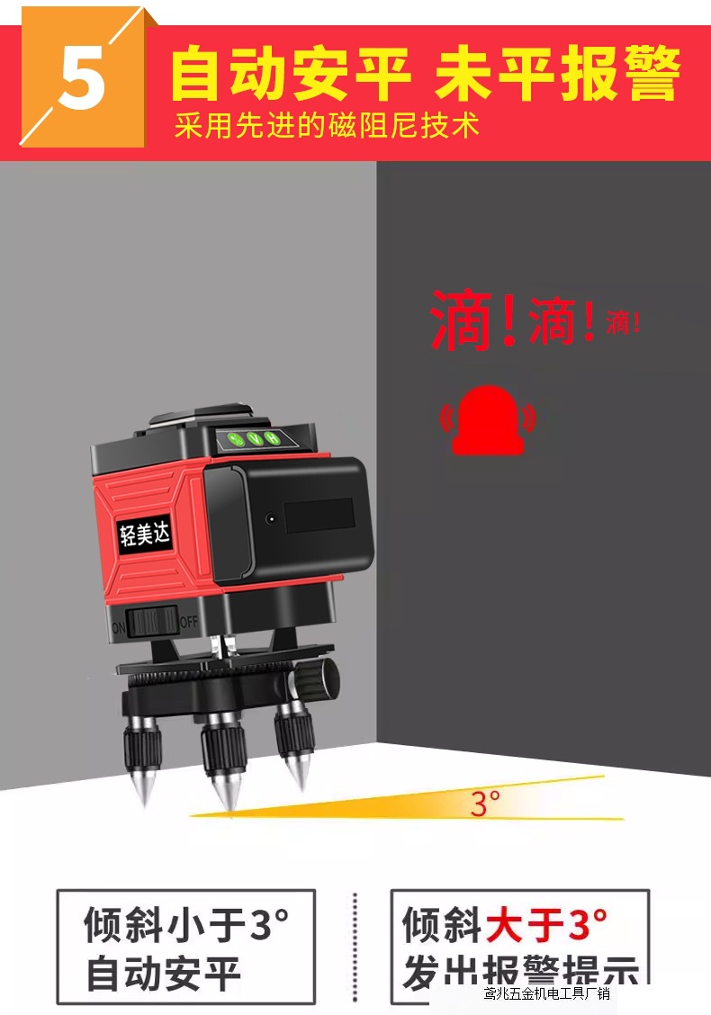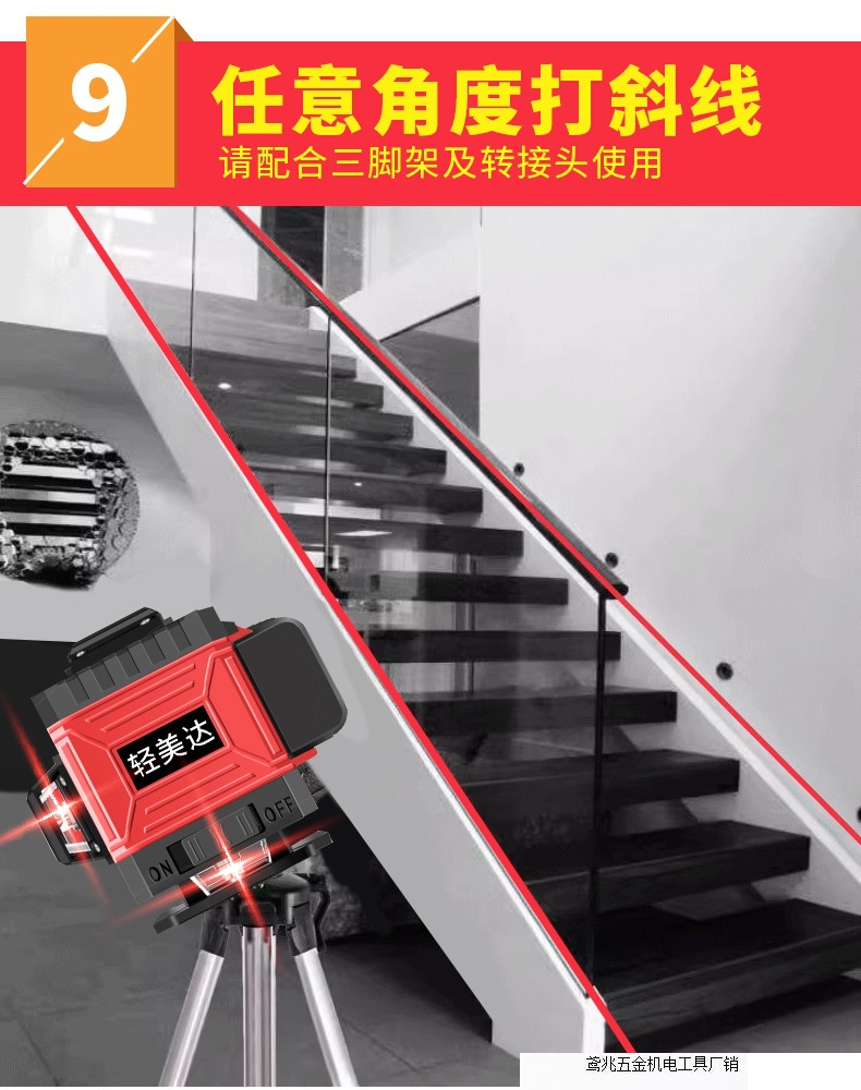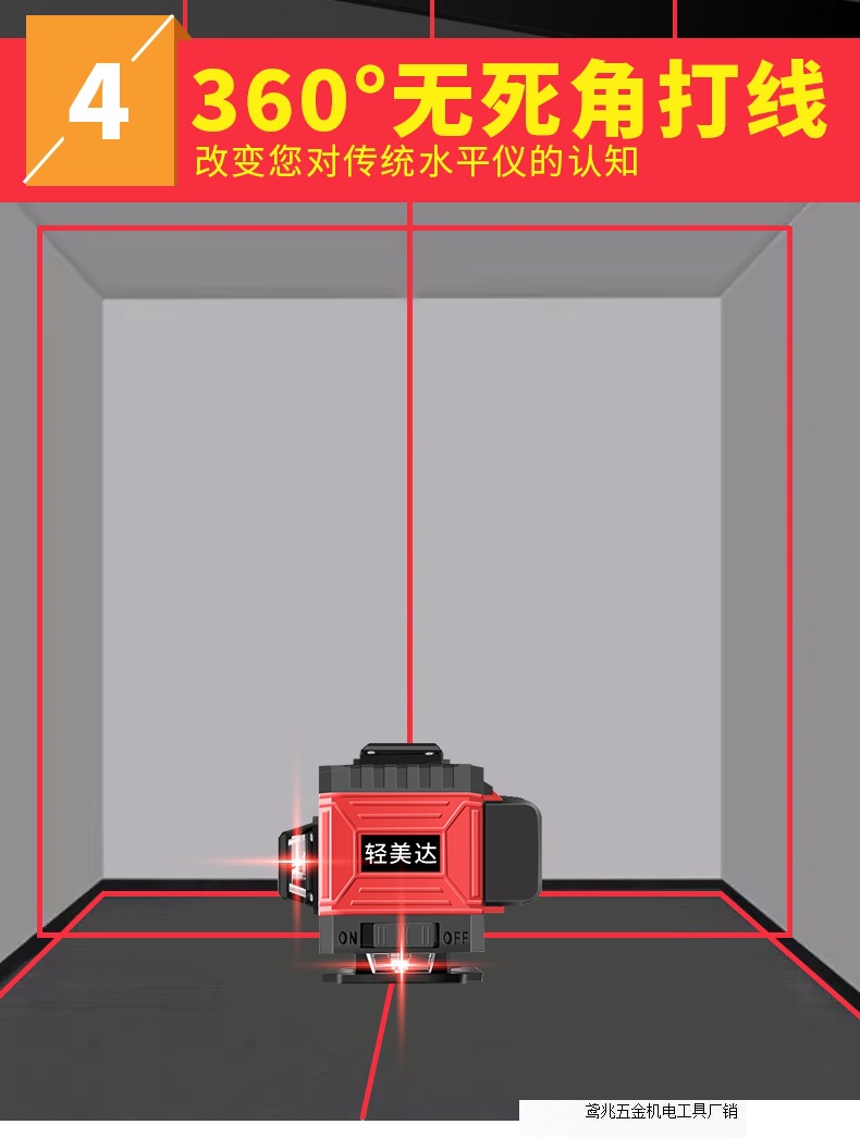 Rotating no blind spot base can rotate super strong red light 16 lines giant 2 batteries + upper