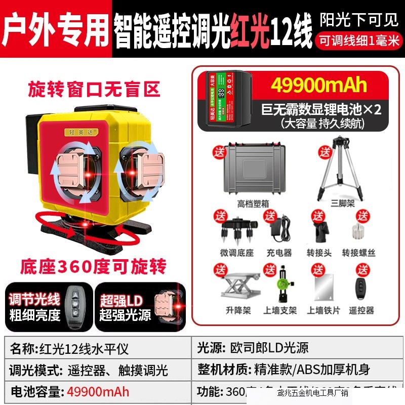 Rotating no blind spot base can rotate super strong red light 12 lines giant 2 batteries + upper