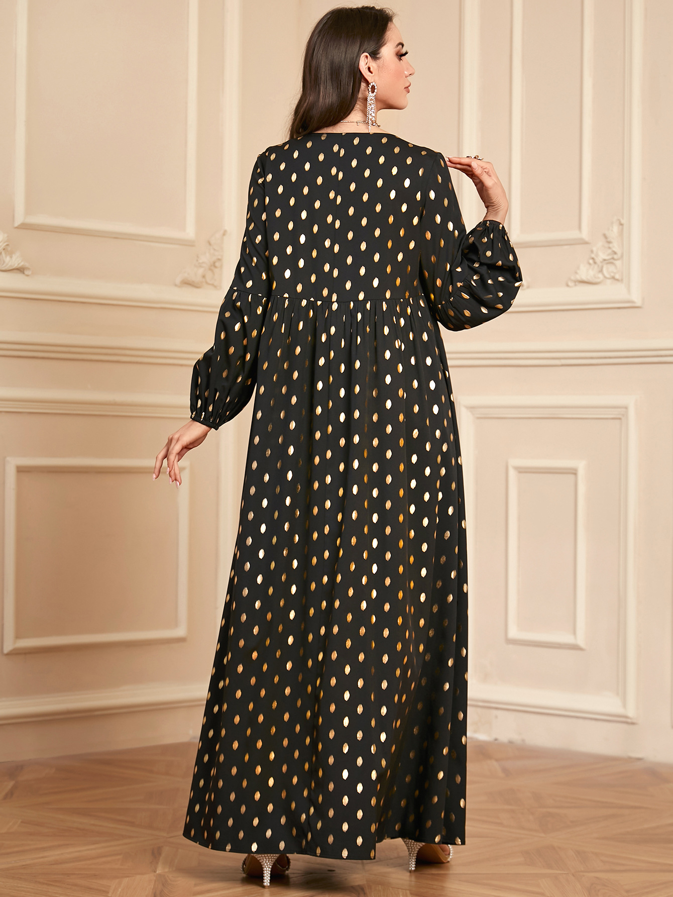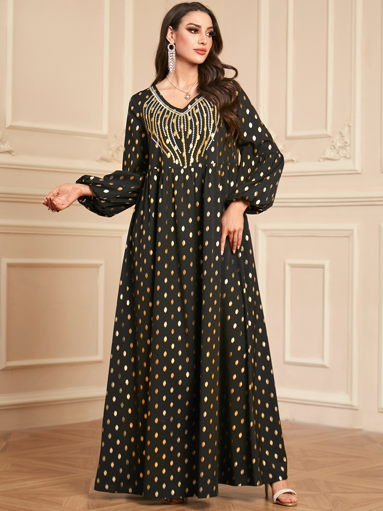 2135 Middle East Cross-border Trade Muslim Robe Long Sleeve Large Pendulum Elegant Women's Embroidered Bronzing dress