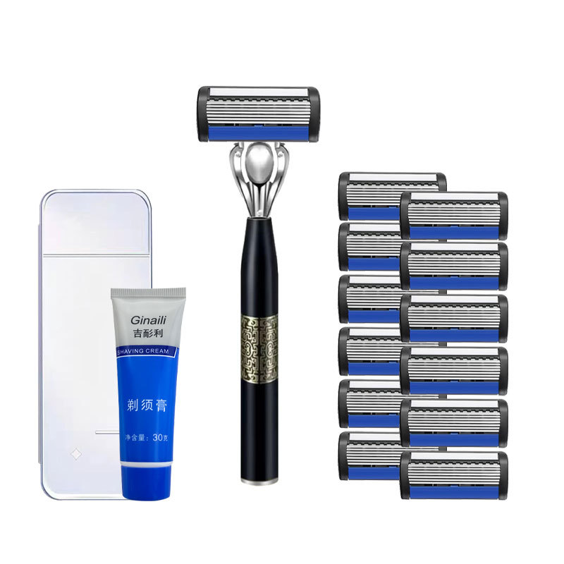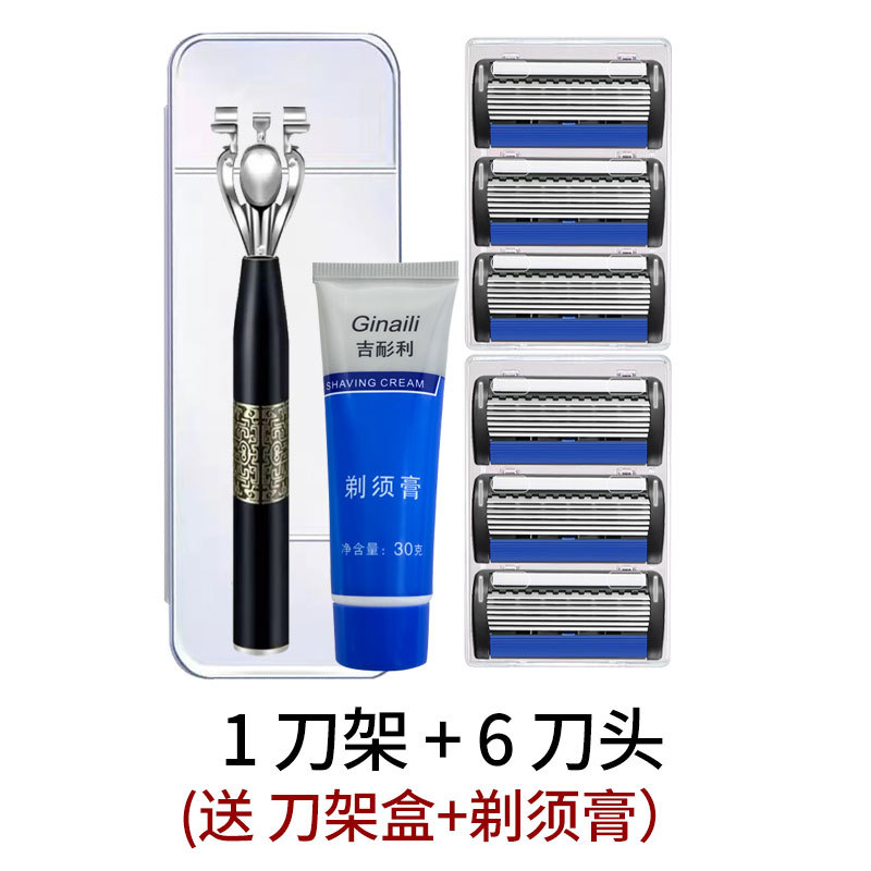 1 knife holder 6 blades 1 knife holder box 1 shaving cream