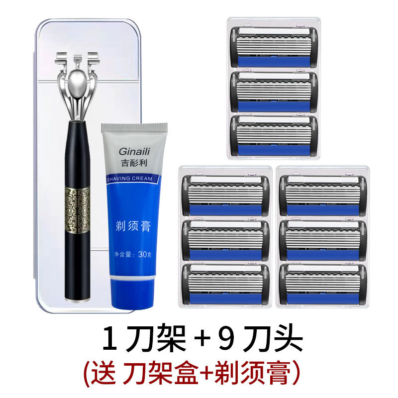 1 knife holder 9 blades 1 knife holder box 1 shaving cream