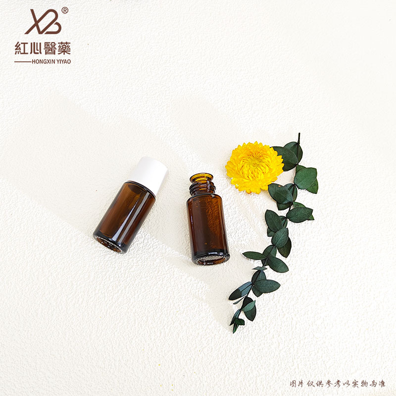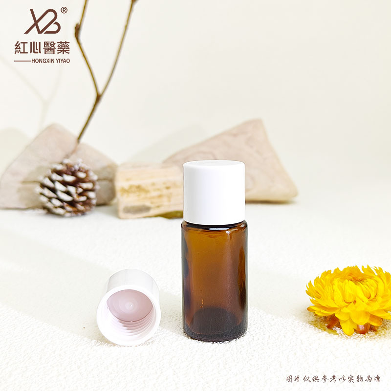 5ml trumpet mouth essential oil bottle with white cap; brown