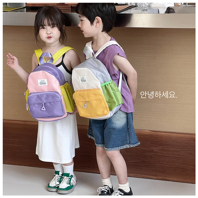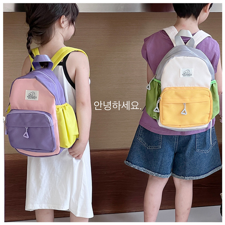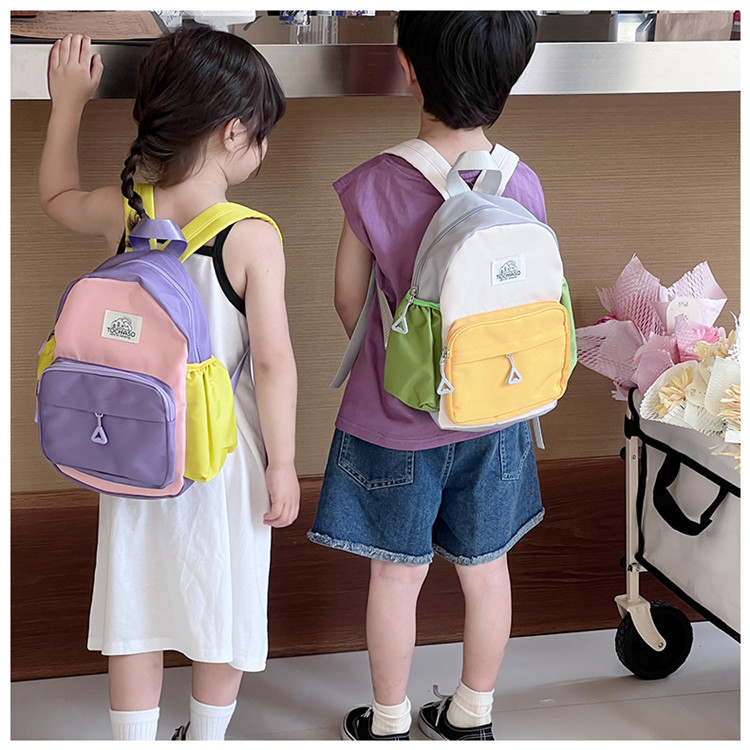 Kindergarten Girl's Small Schoolbag 2024 New Children's Lightweight Contrast Small Backpack Baby's School Canvas Backpack