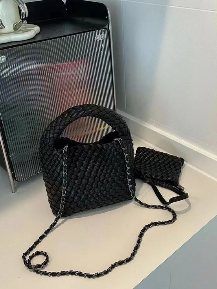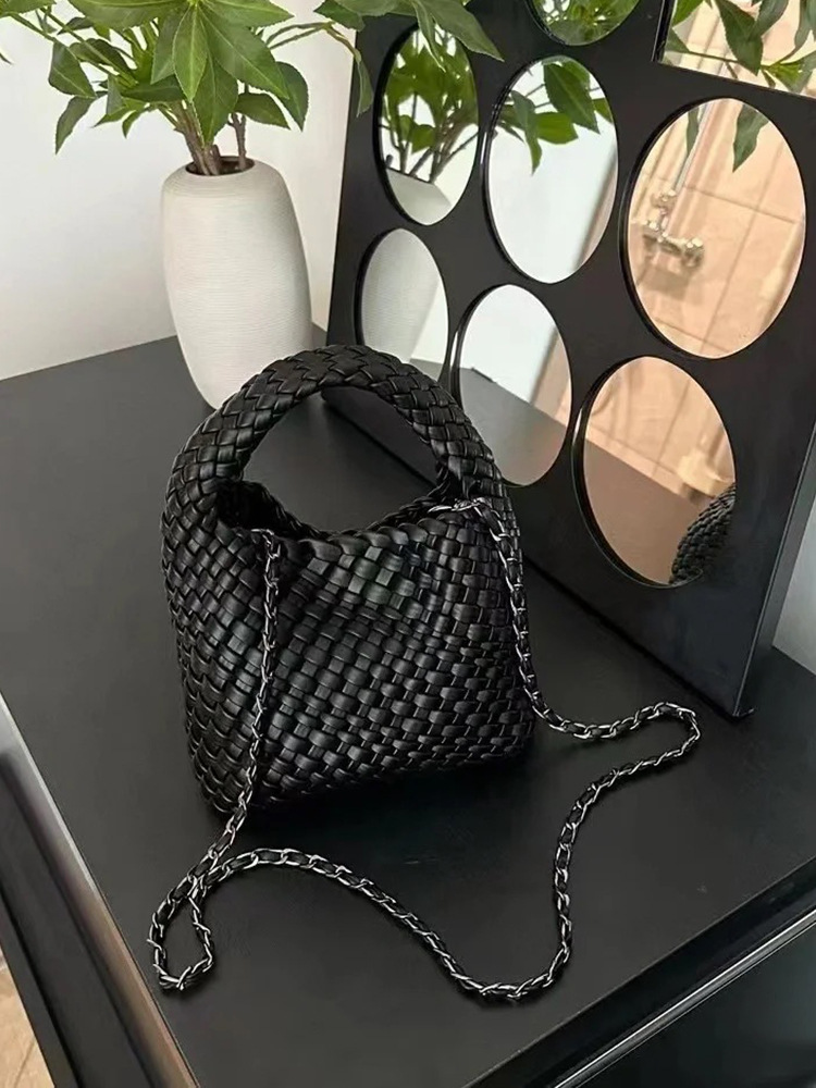 Classic black + woven inner bag + long chain, high quality, in stock, collection and gifts