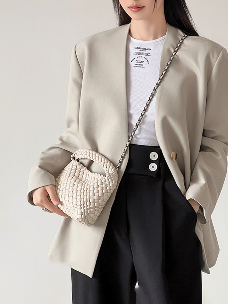 Khaki + woven inner bag + long chain, high quality, ready stock, collection and gifts