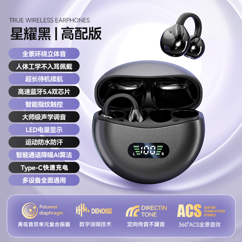 Xingyao Black [LED Power Display★Bluetooth 5.4 chip★Long wear does not hurt]]