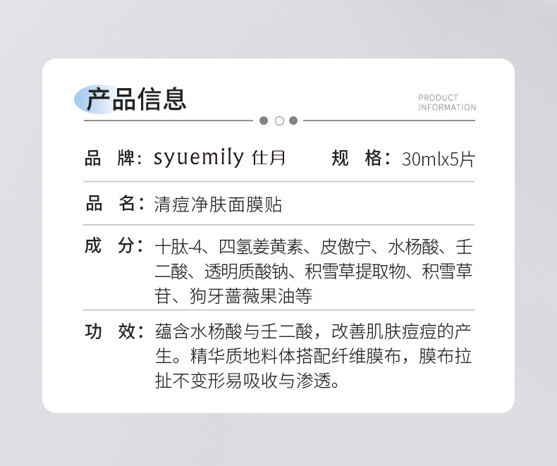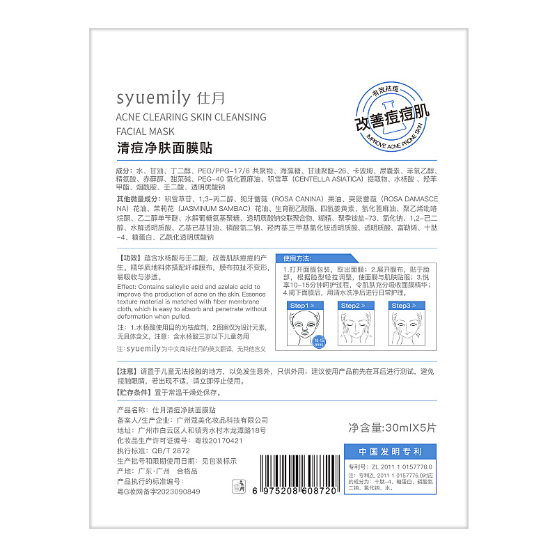 Acne clearing and purifying mask (cool tea mask) 30ml*5 pieces/box