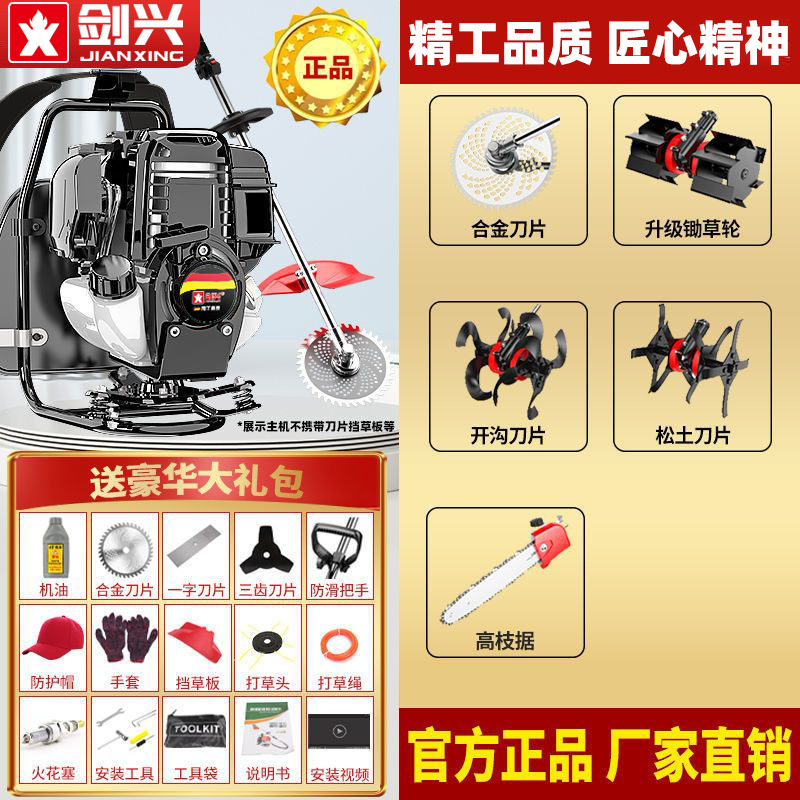 Shennong 4-stroke pure gasoline backpack [mowing] hoeing + loosening + ditching + high branch saw function