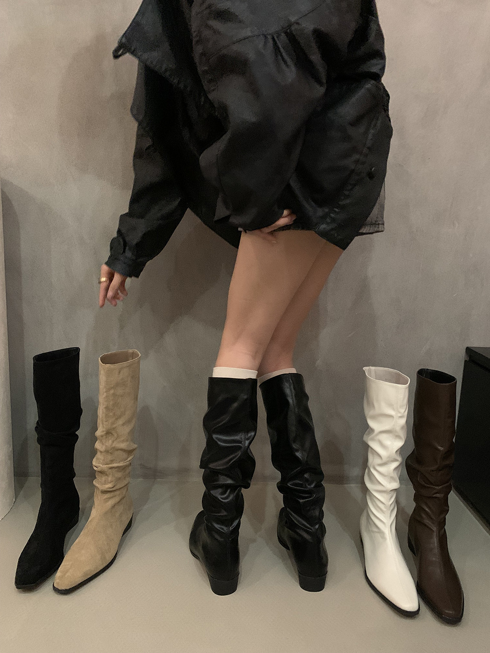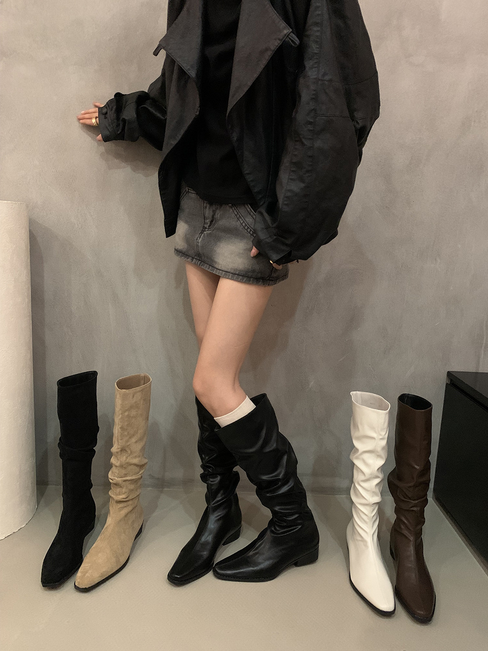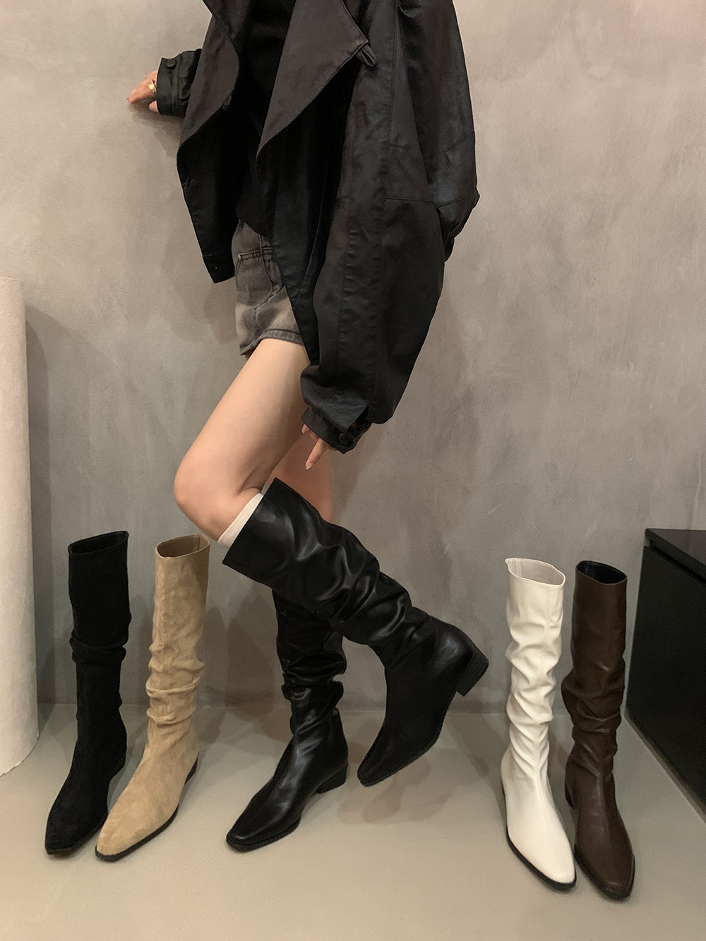 French Retro Brown Heap Boots Western Boots Early Autumn Small khaki Boots Thick Heel High Boots Women's Boots