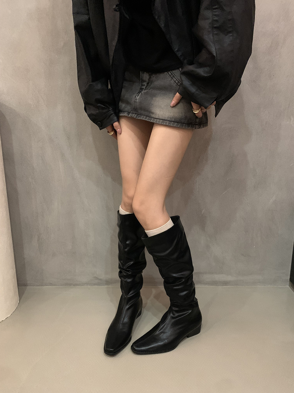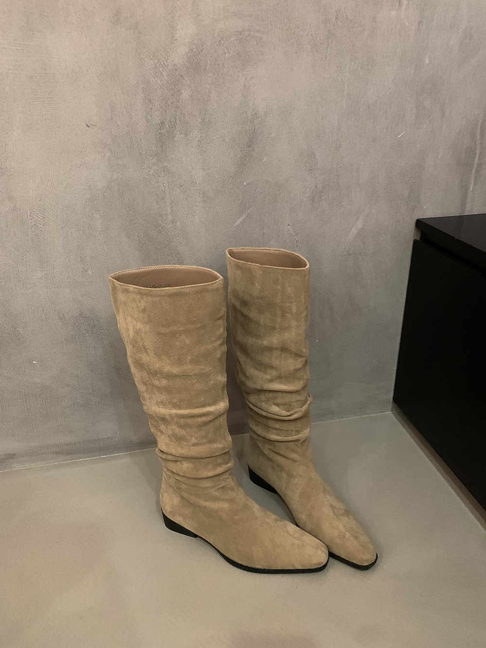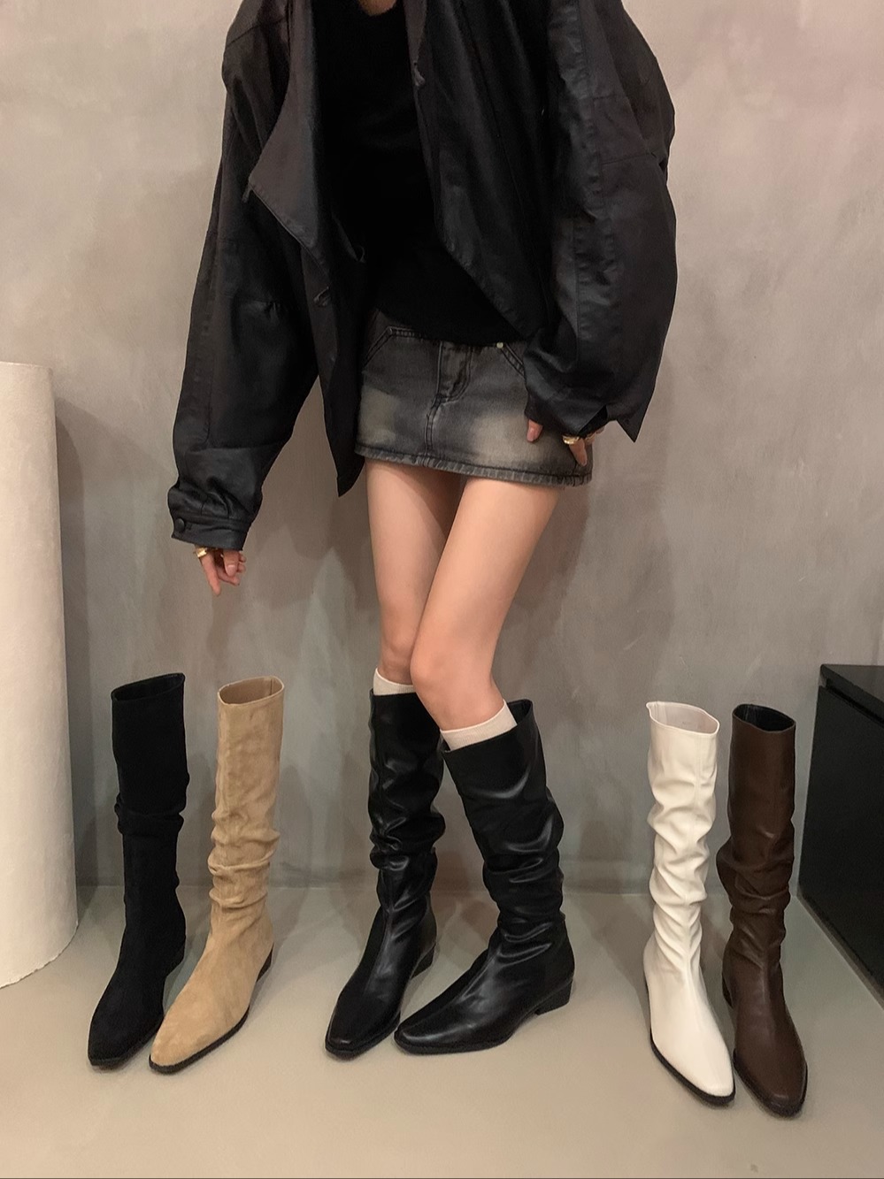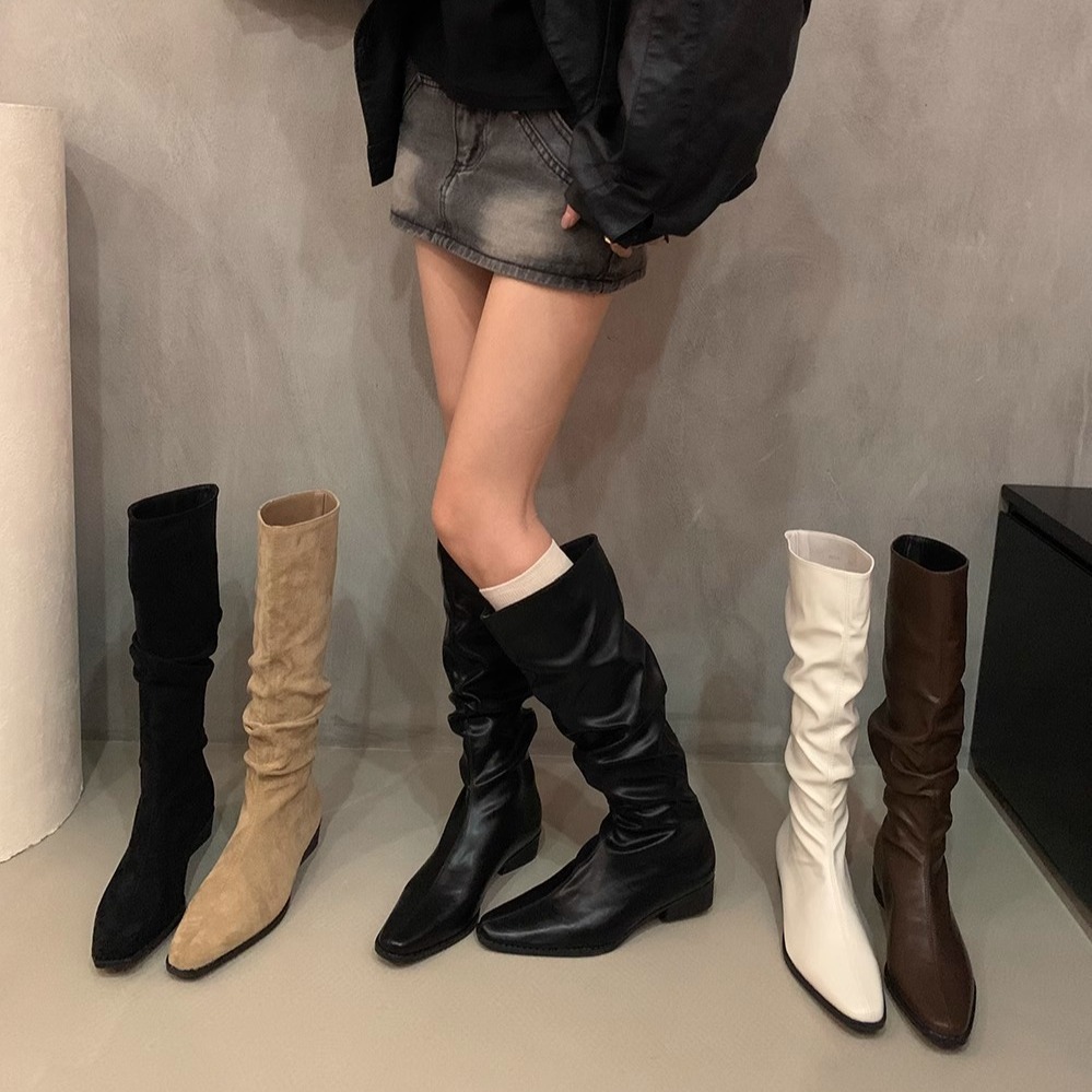 French Retro Brown Heap Boots Western Boots Early Autumn Small khaki Boots Thick Heel High Boots Women's Boots