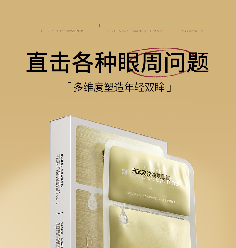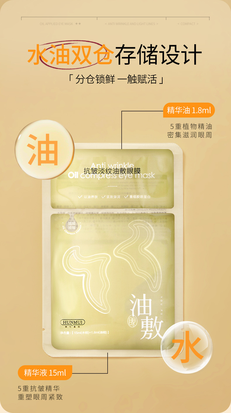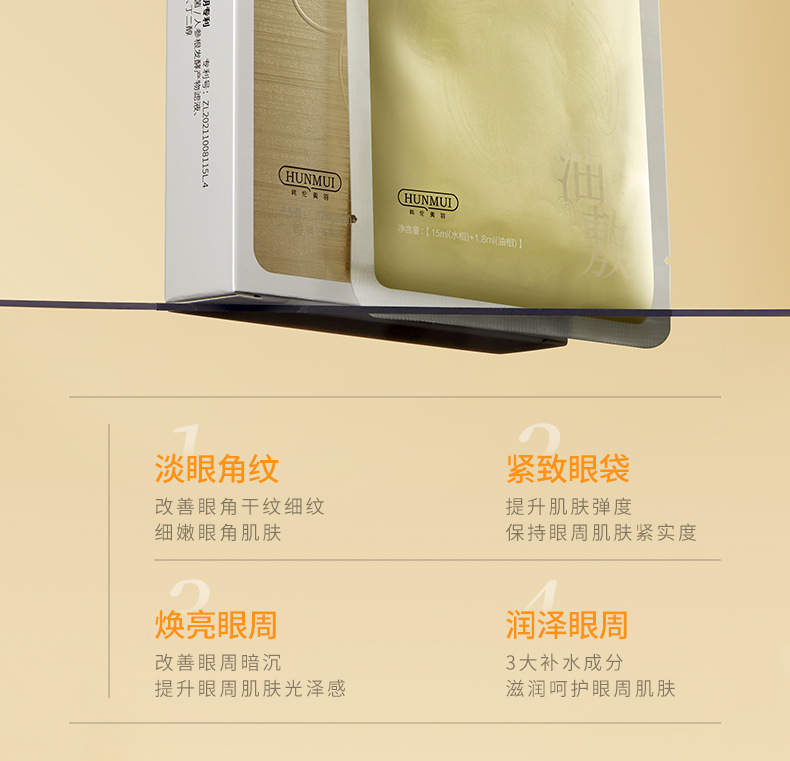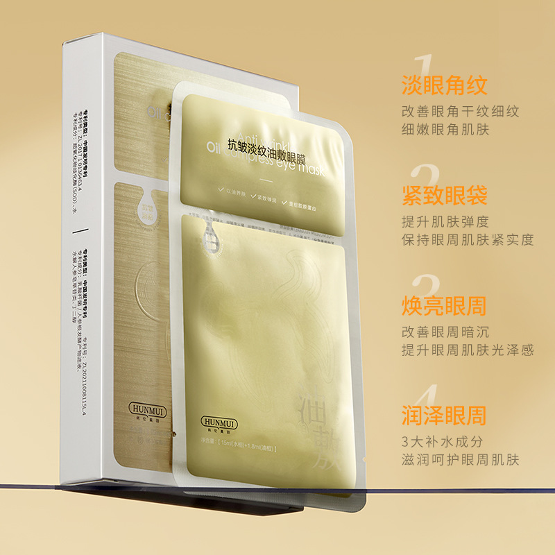 Han Lun Meiyu Anti-Wrinkle and Lightening Oil Eye Mask Reduces Dark Circles and Eye Bags, Moisturizes the Eye Area, Gold Anti-Wrinkle Eye Mask Patch