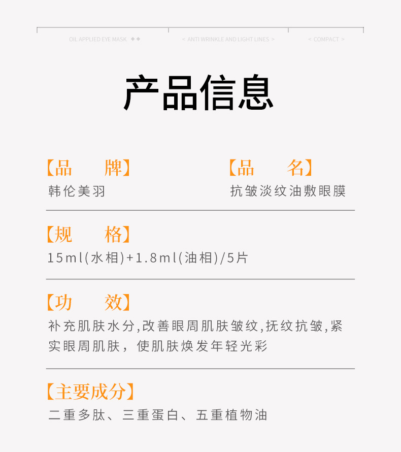 Han Lunmeiyu-anti-wrinkle light grain oil eye mask (five pieces)