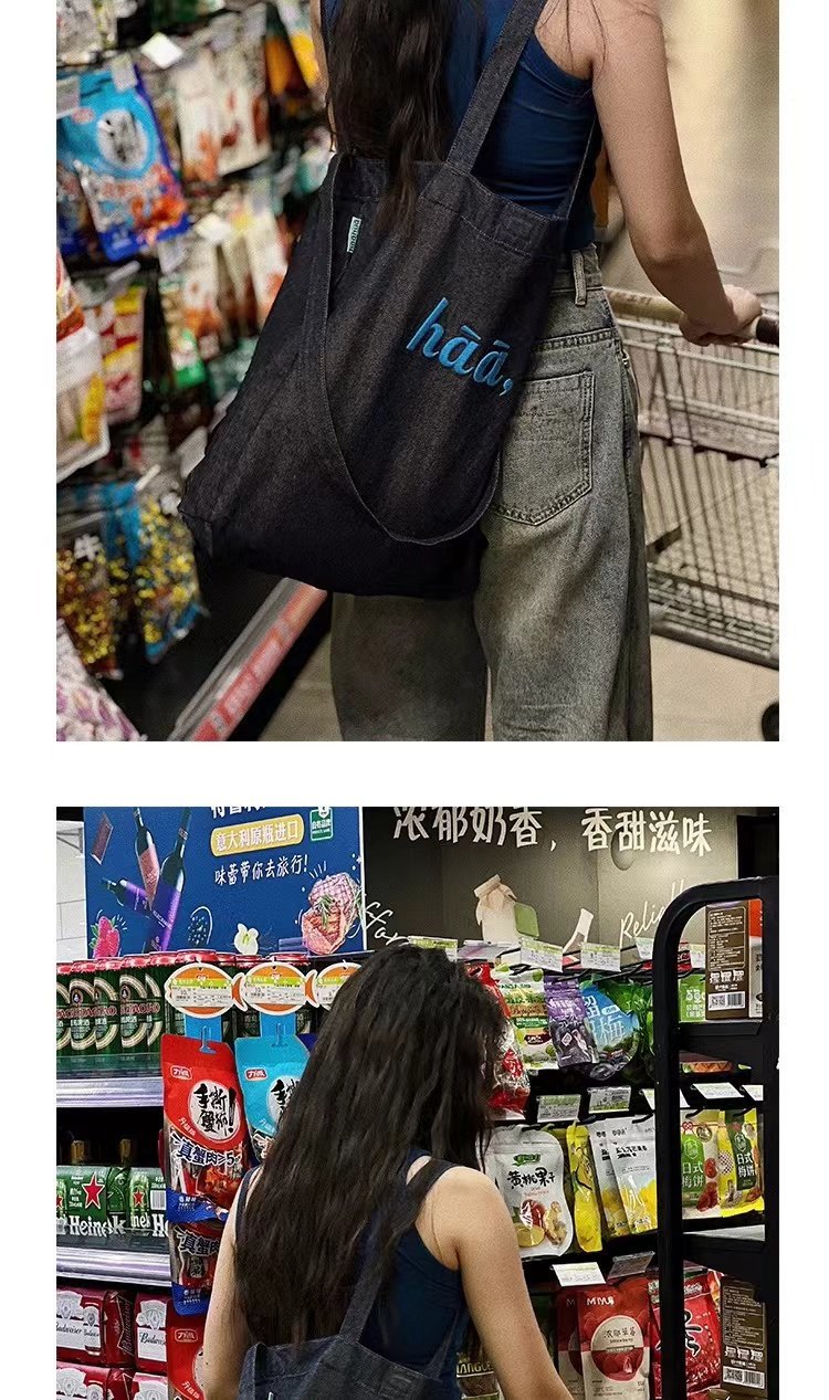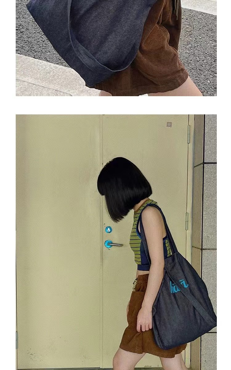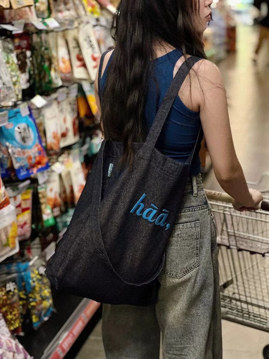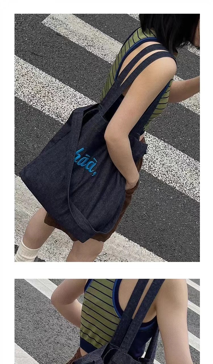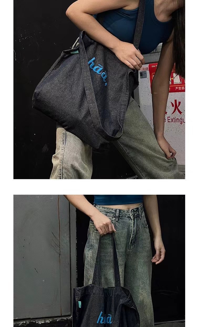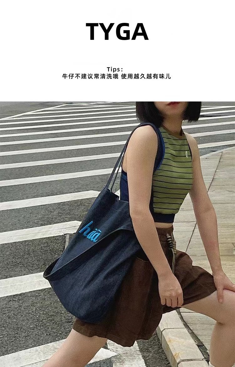 TYGA New Canvas Bag Casual All-match Terber Denim Bag Large Capacity Tote Bag Niche Shoulder Crossbody Bag