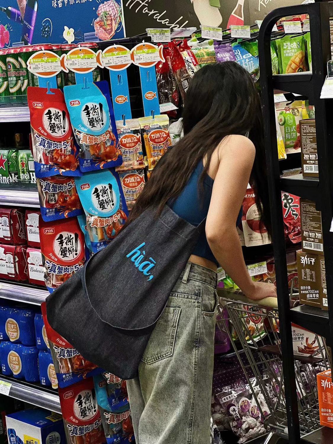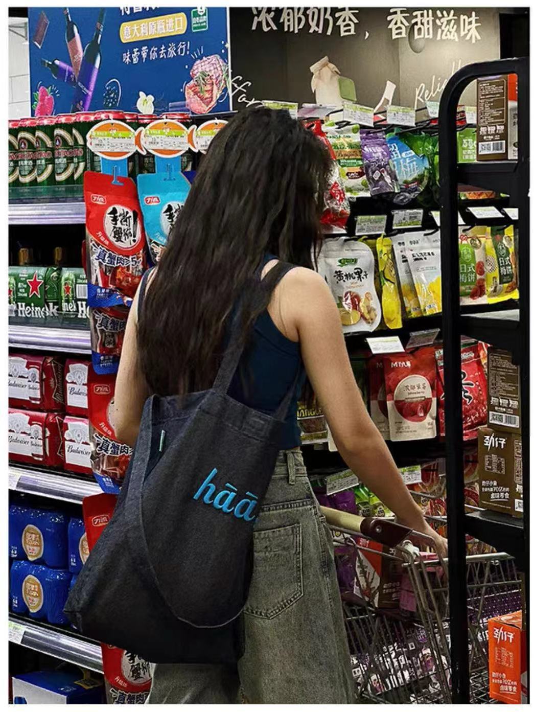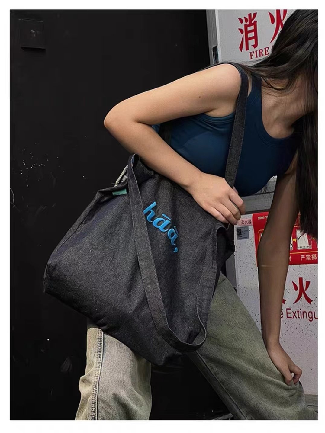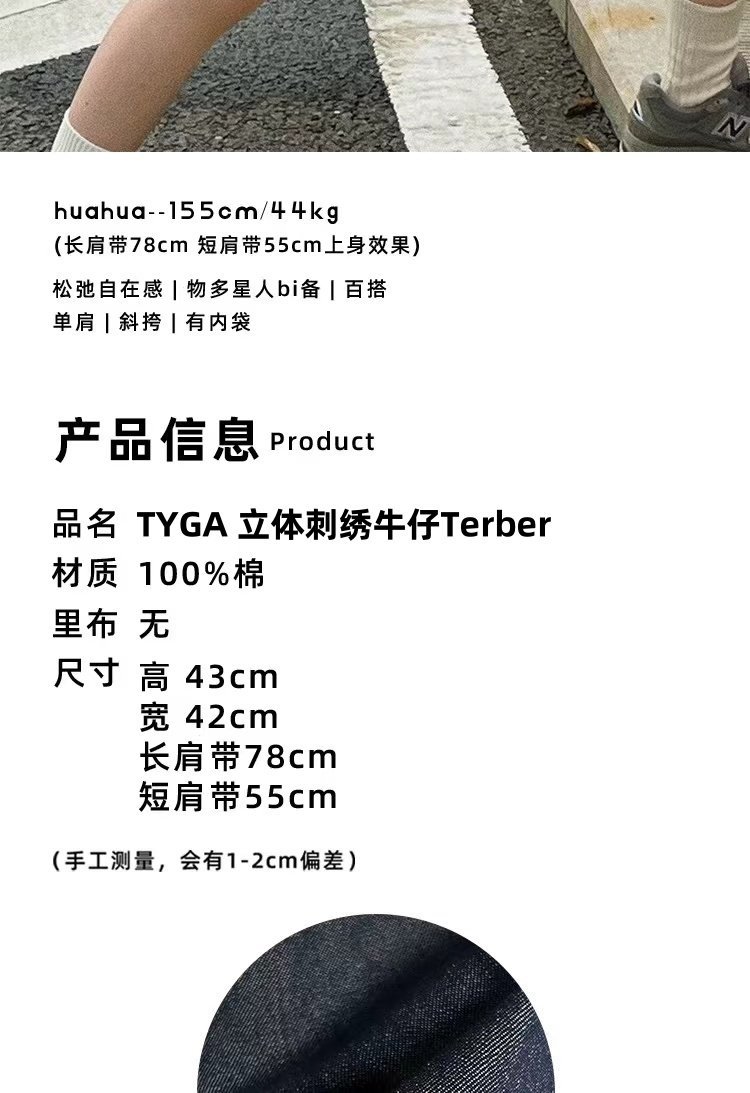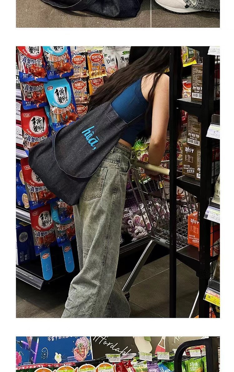 TYGA New Canvas Bag Casual All-match Terber Denim Bag Large Capacity Tote Bag Niche Shoulder Crossbody Bag