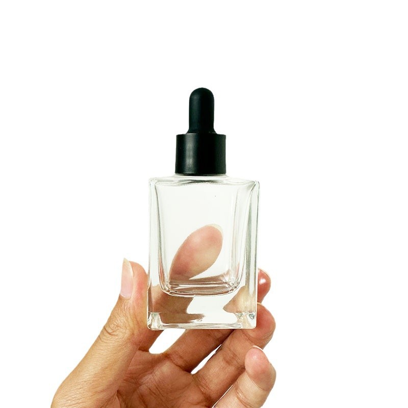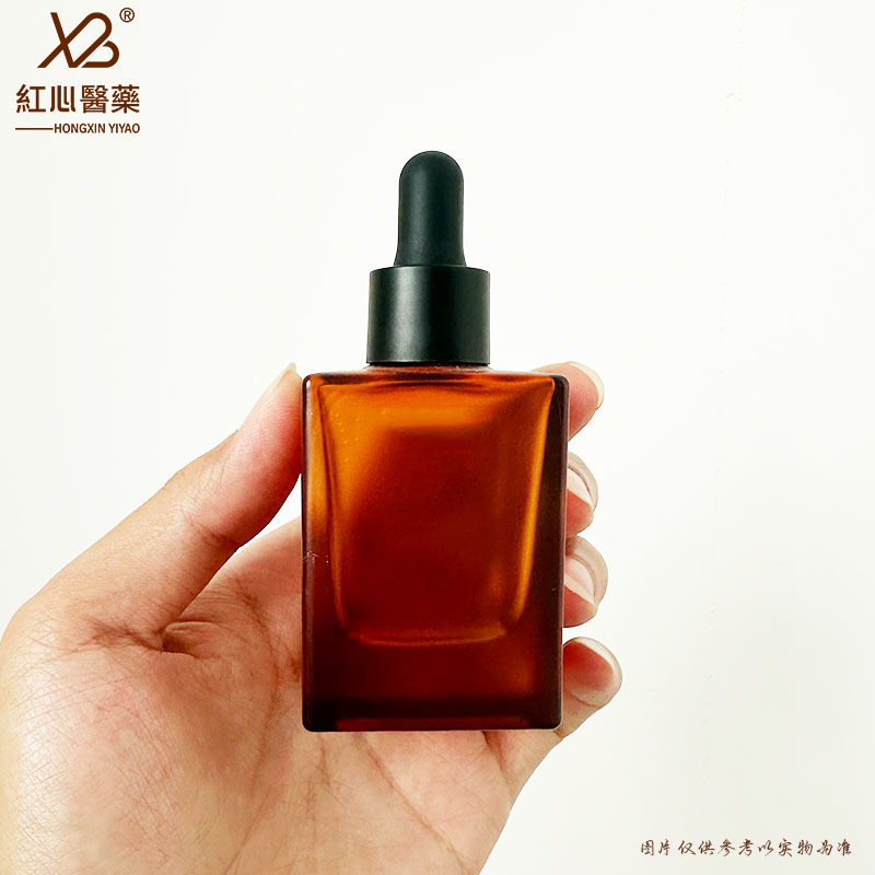 Empty bottle; glass; 30ml frosted burgundy square bottle with frosted black ring rubber head + 1.5 gasket