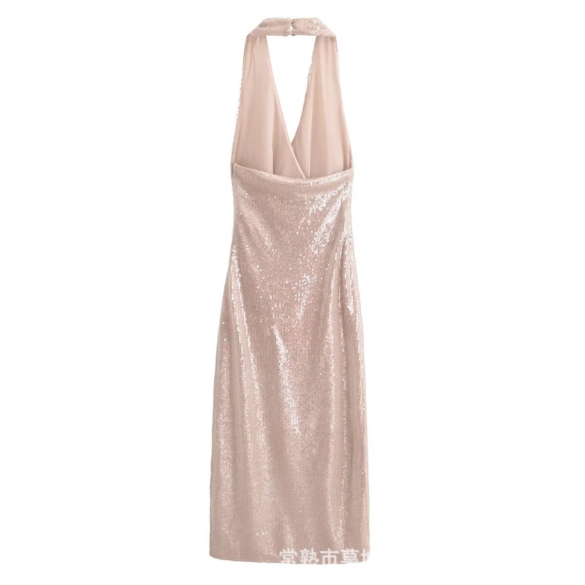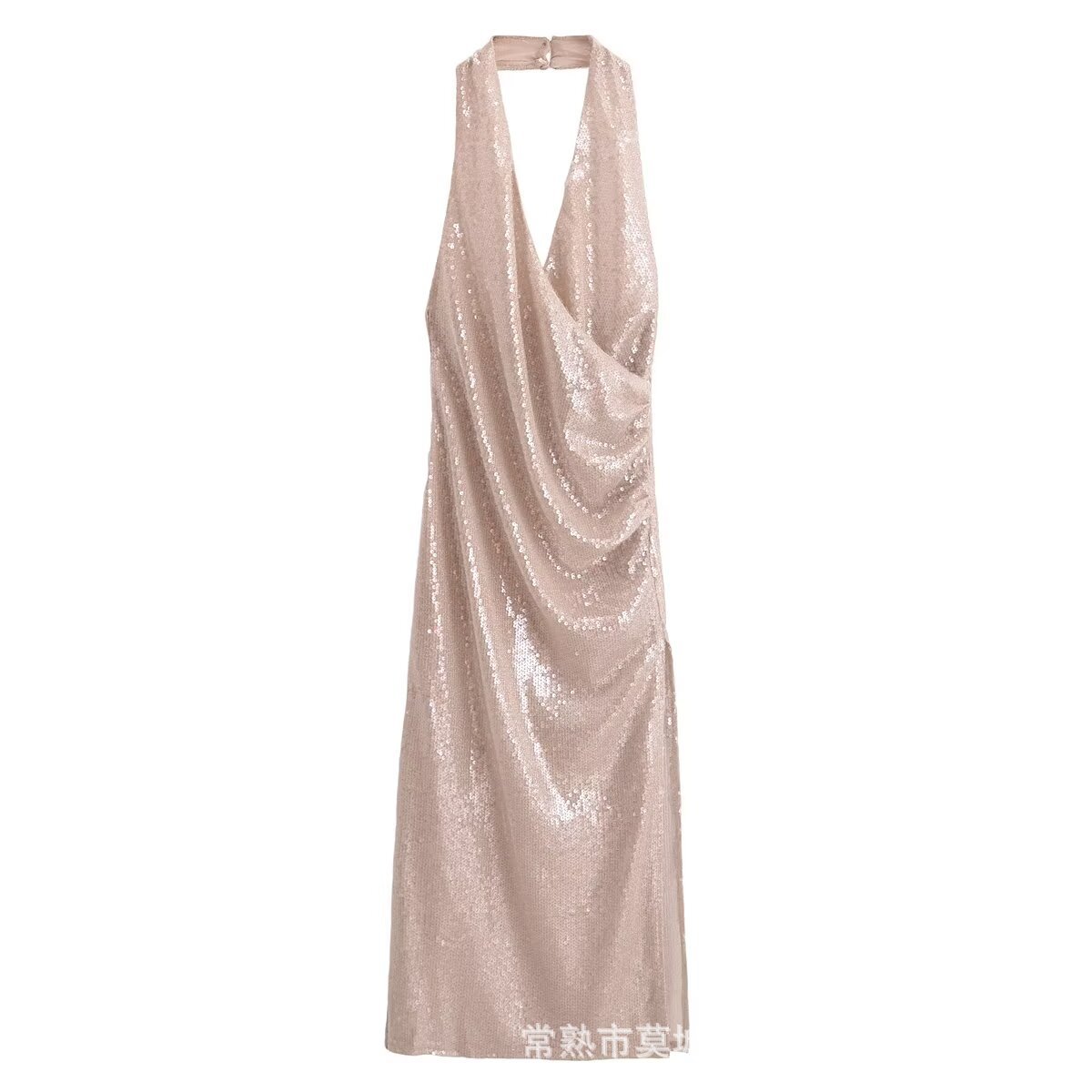 Uc&Za European and American Style Women's Fashion Sequined Slim Slit Halterneck Dress Sequined Dress 4813835