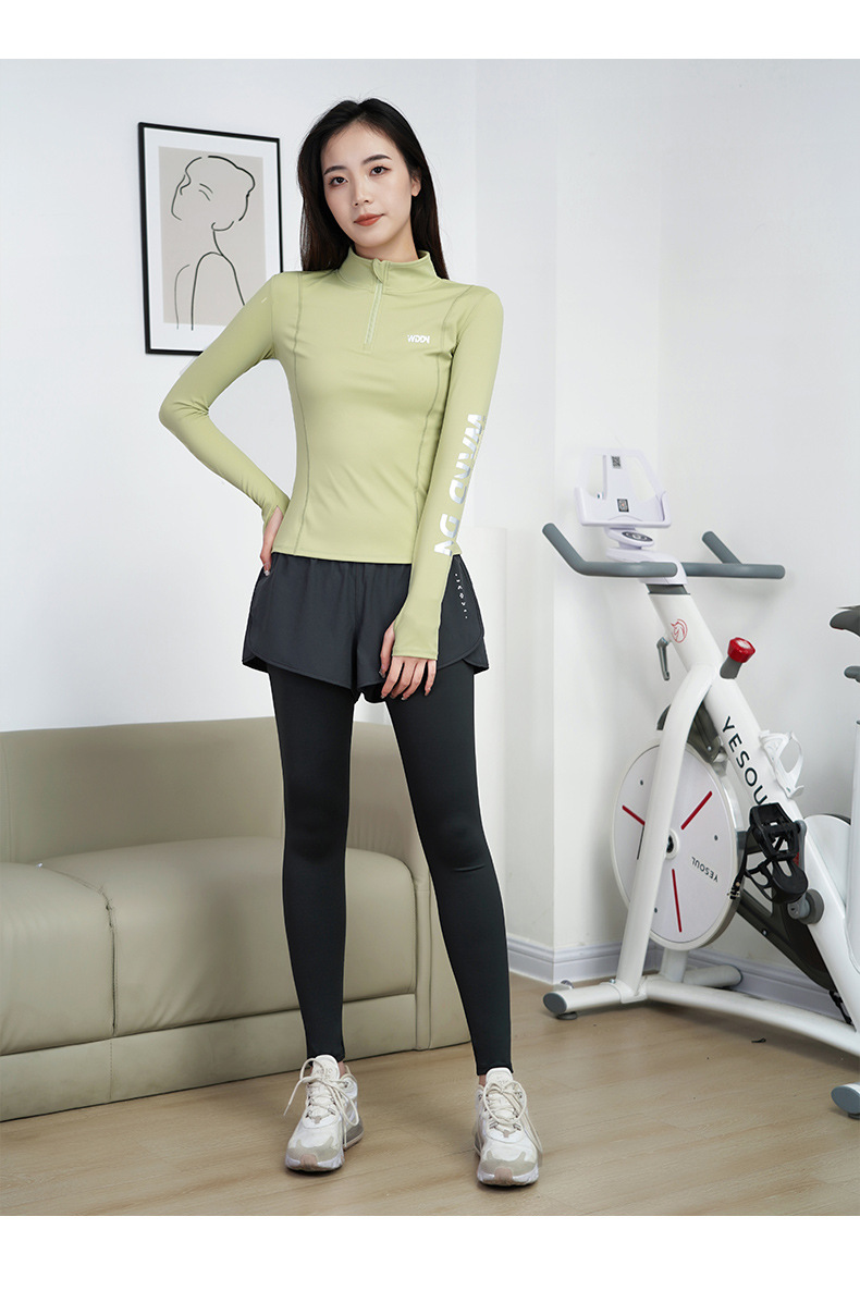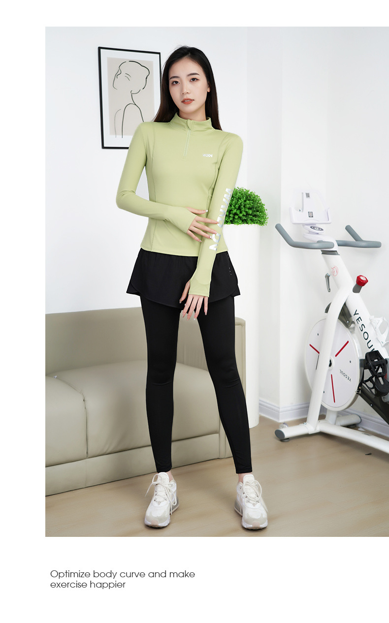 Green long sleeves + black trousers