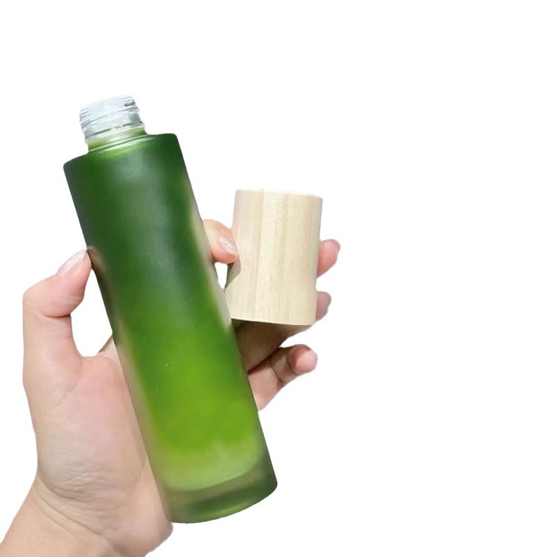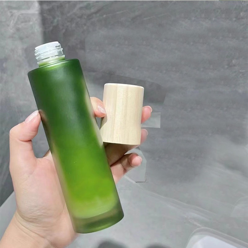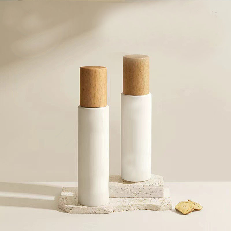100m matte brown lotion glass bottle + beech wood grain cap; matte brown; glass