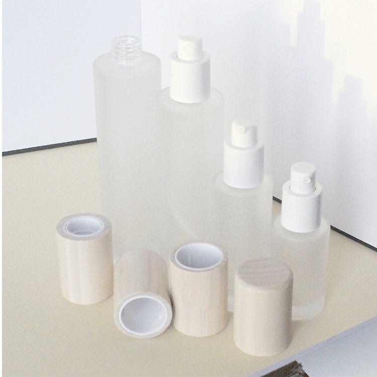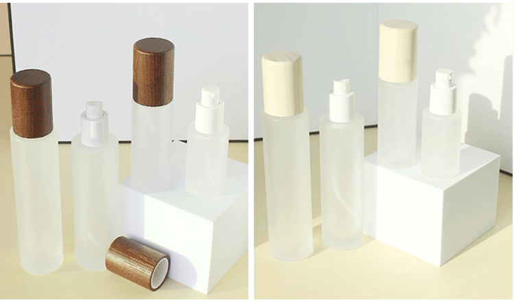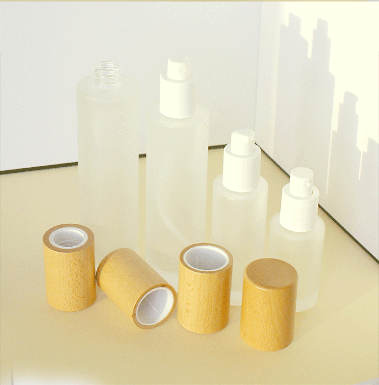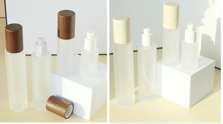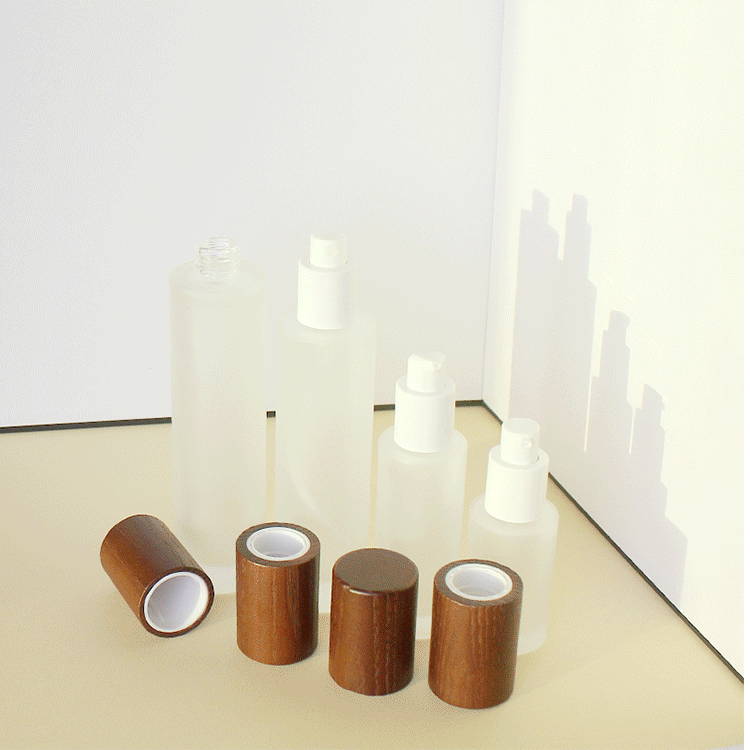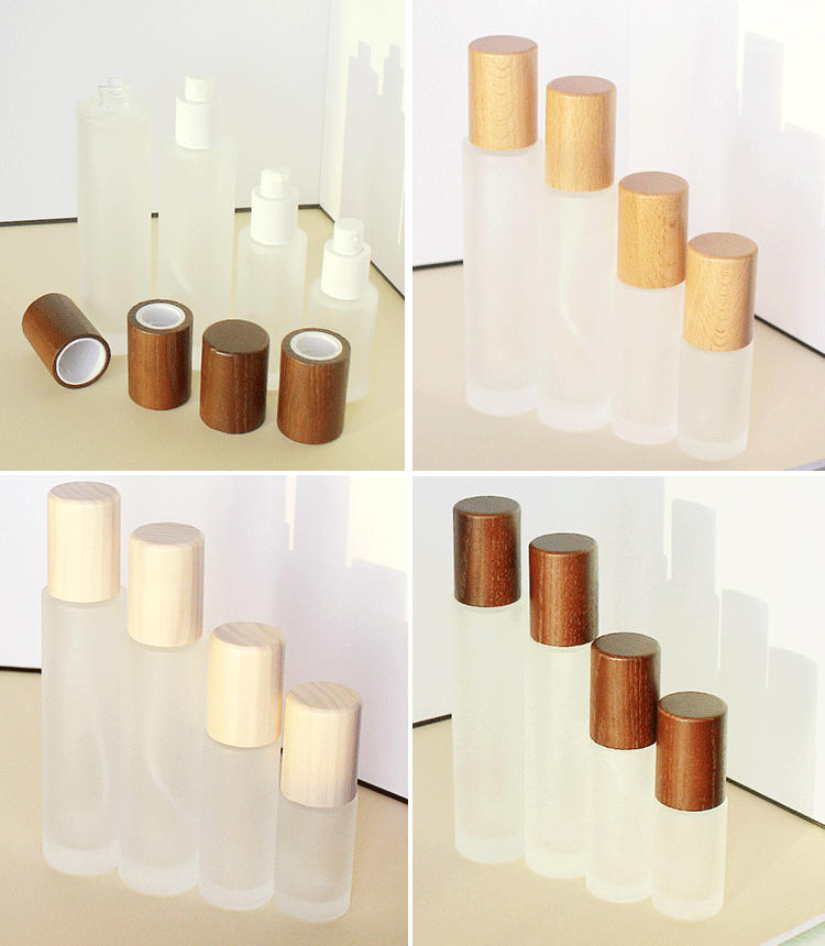 100ml matte brown cap glass bottle + beech wood grain cap; matte brown; glass