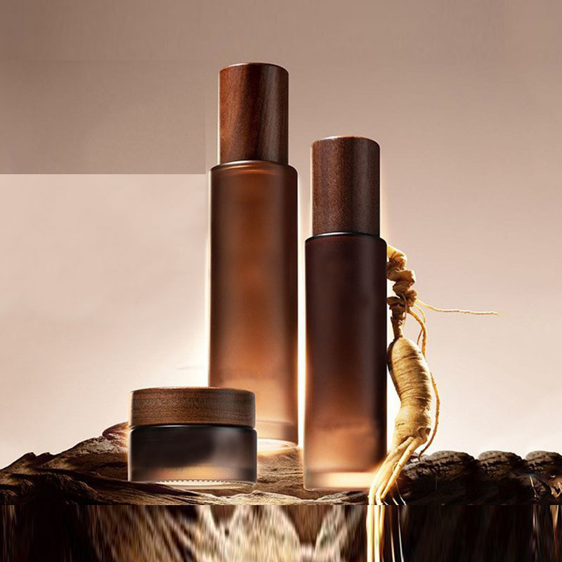 50g matte brown glass bottle + beech wood grain cap; matte brown; glass