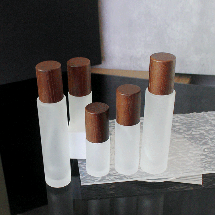 50ml matte brown cap glass bottle + beech wood grain cap; matte brown; glass