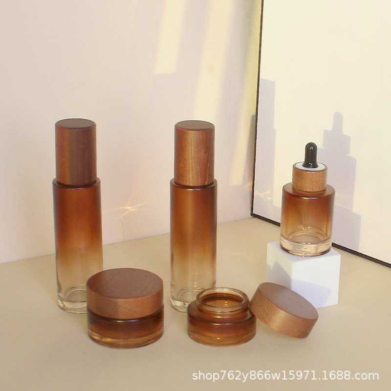 30g matte brown glass bottle + beech wood grain cap; matte brown; glass