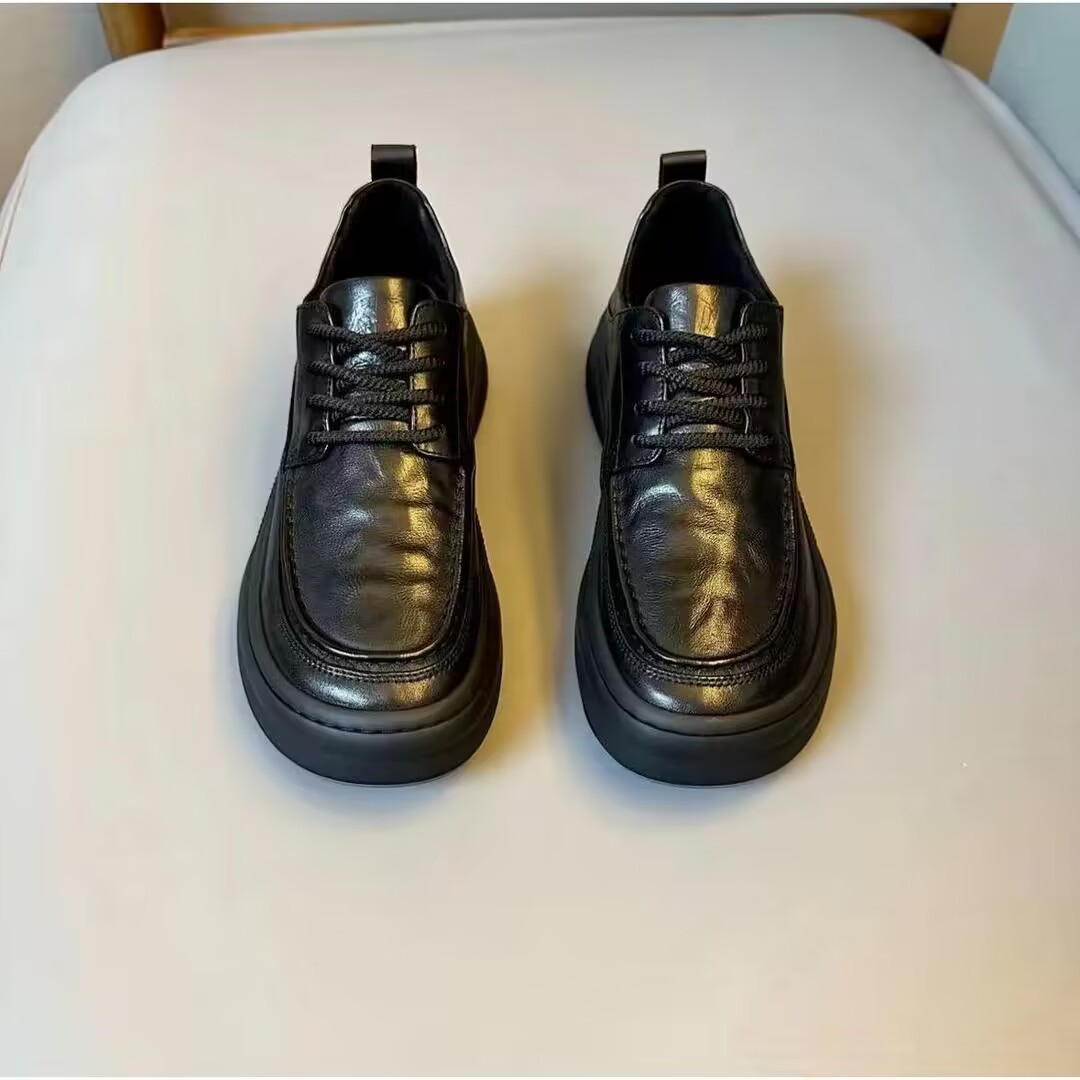 Men's Genuine Leather Spring Business Casual Leather Shoes 2024 New Trend Versatile Thick-Soled Non-Slip British Style Shoes for Men