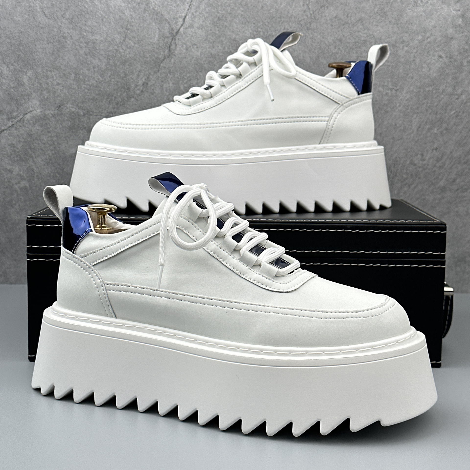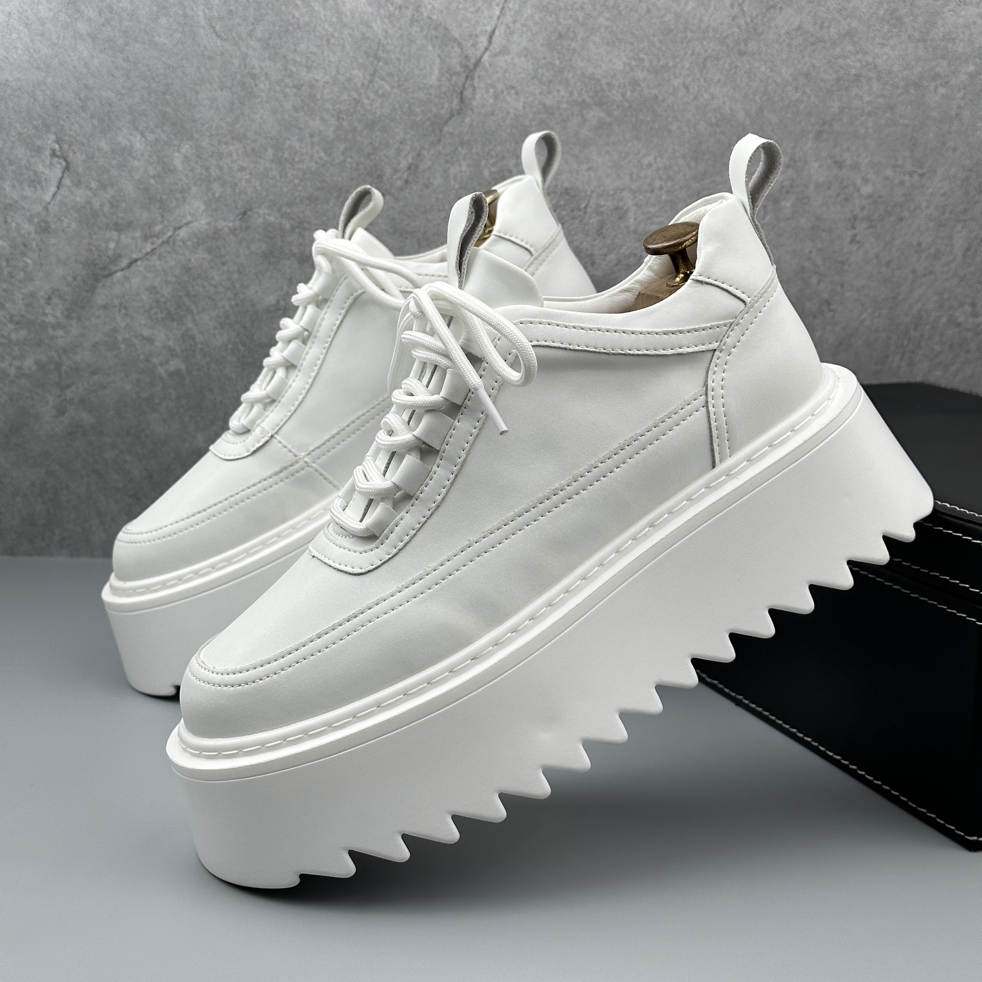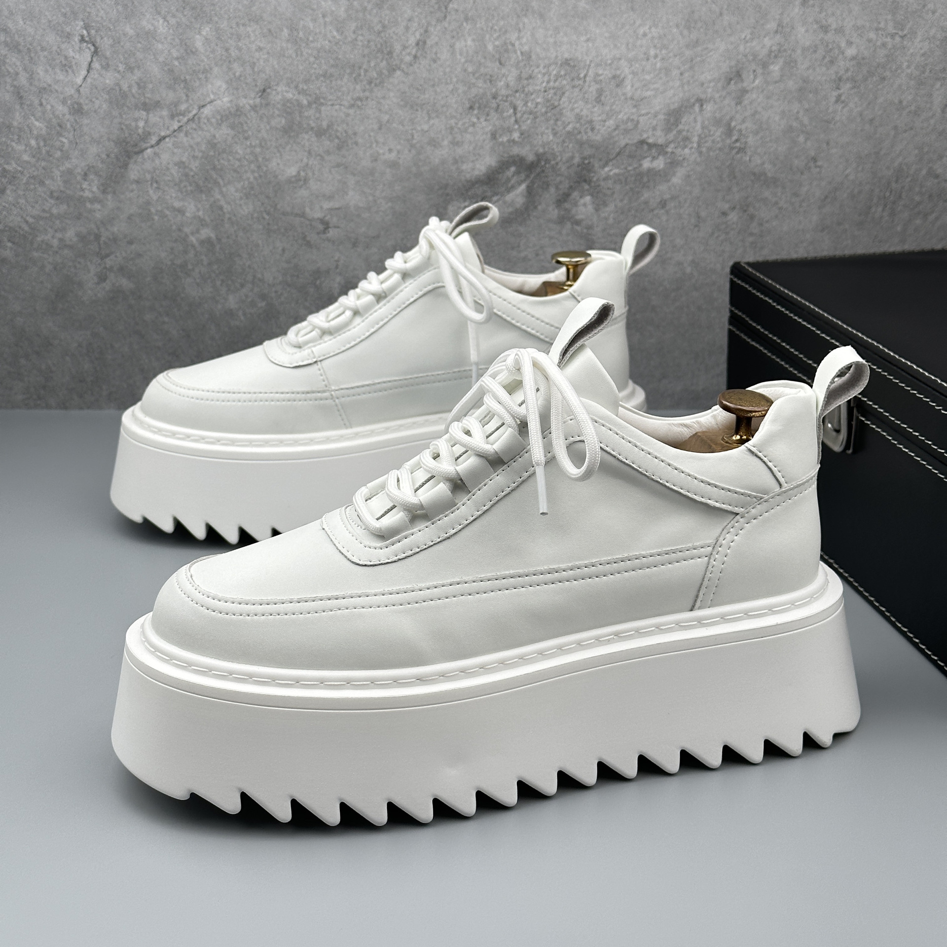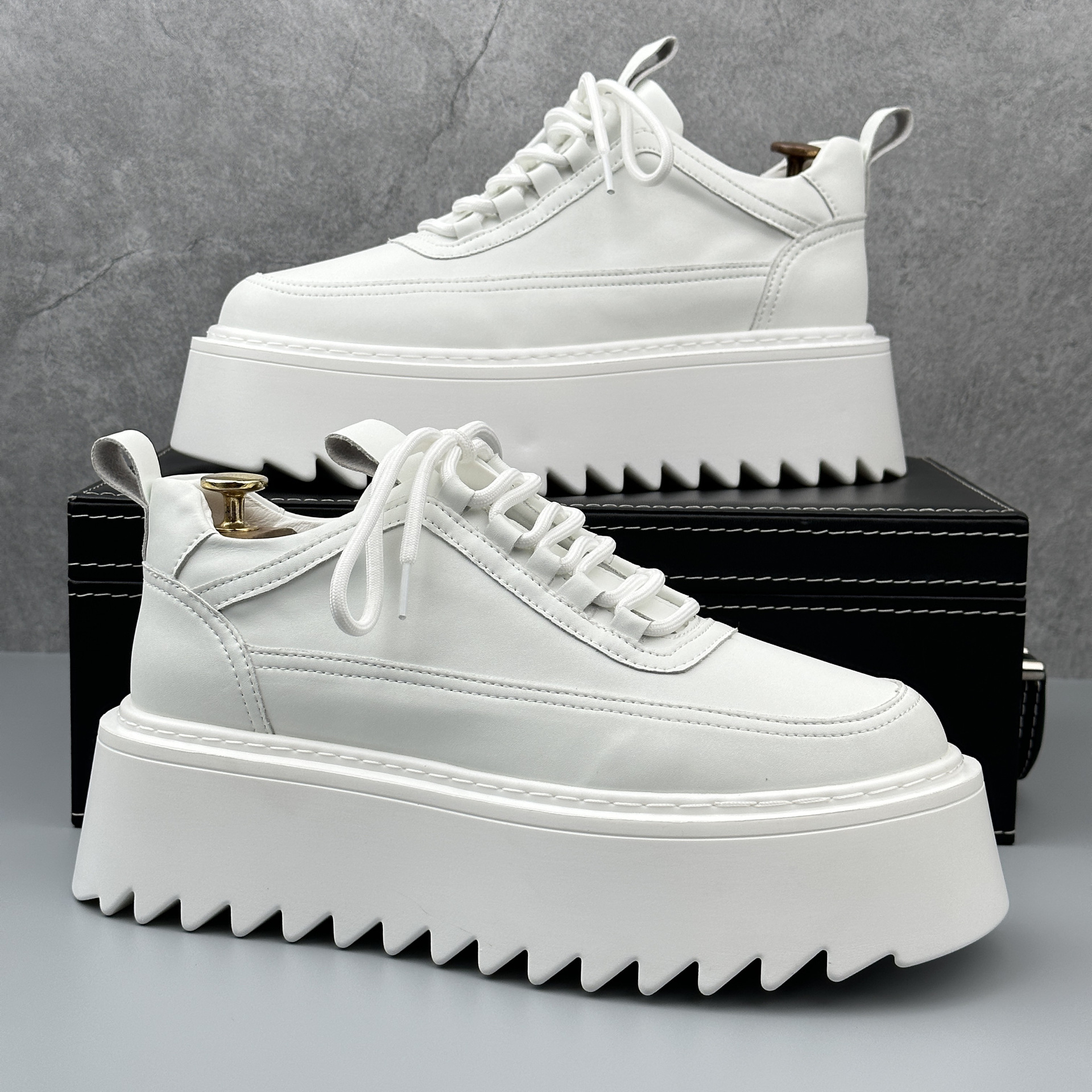 Thick-soled small white shoes men's 2024 autumn new niche height shoes fashion all-match trend casual sponge cake shoes