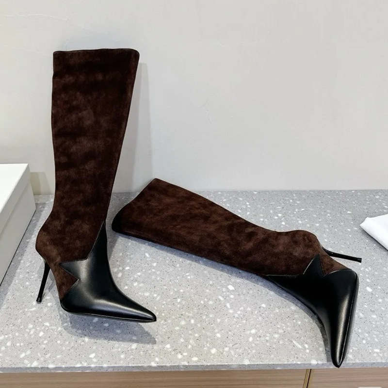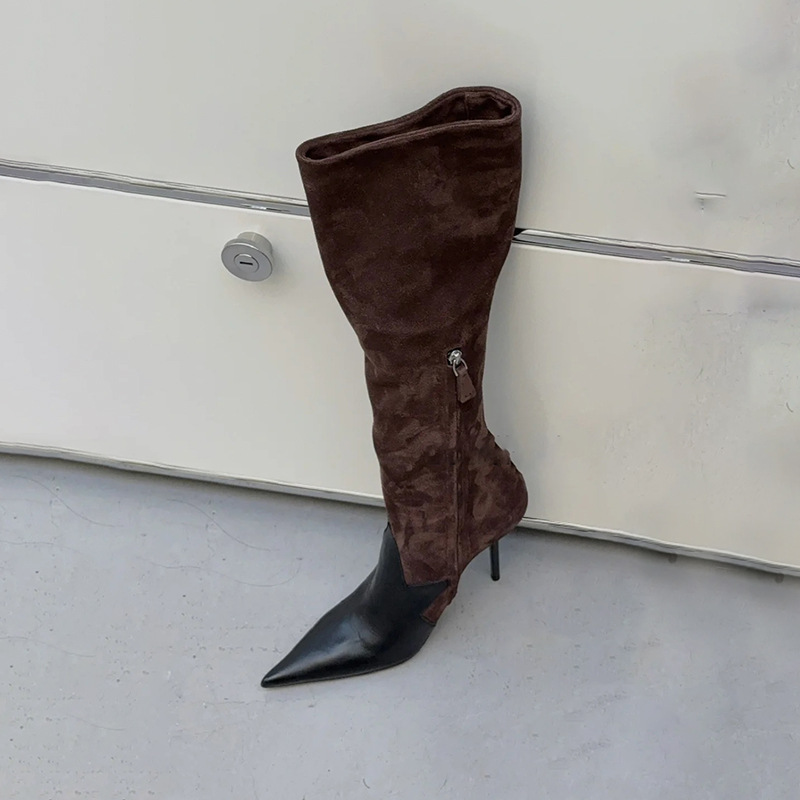 High-End Niche Hot Girl Pointed-Toe Stiletto Slimming Side-Zip High-Tube Riding Boots (Below the Knee) (Tax Not Included)