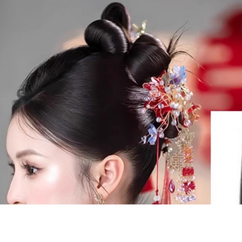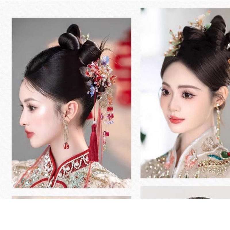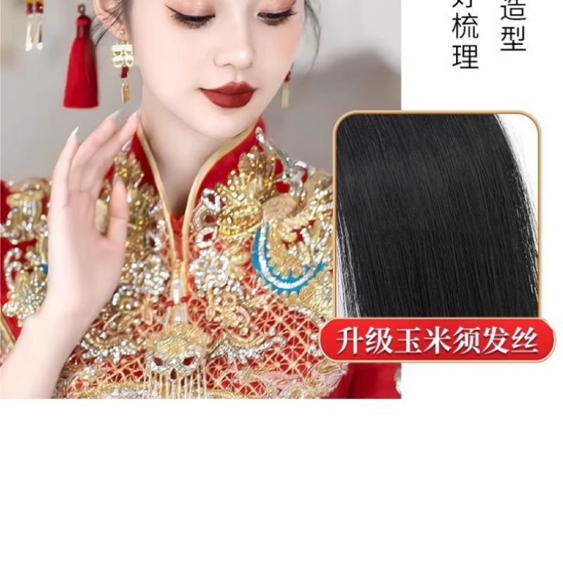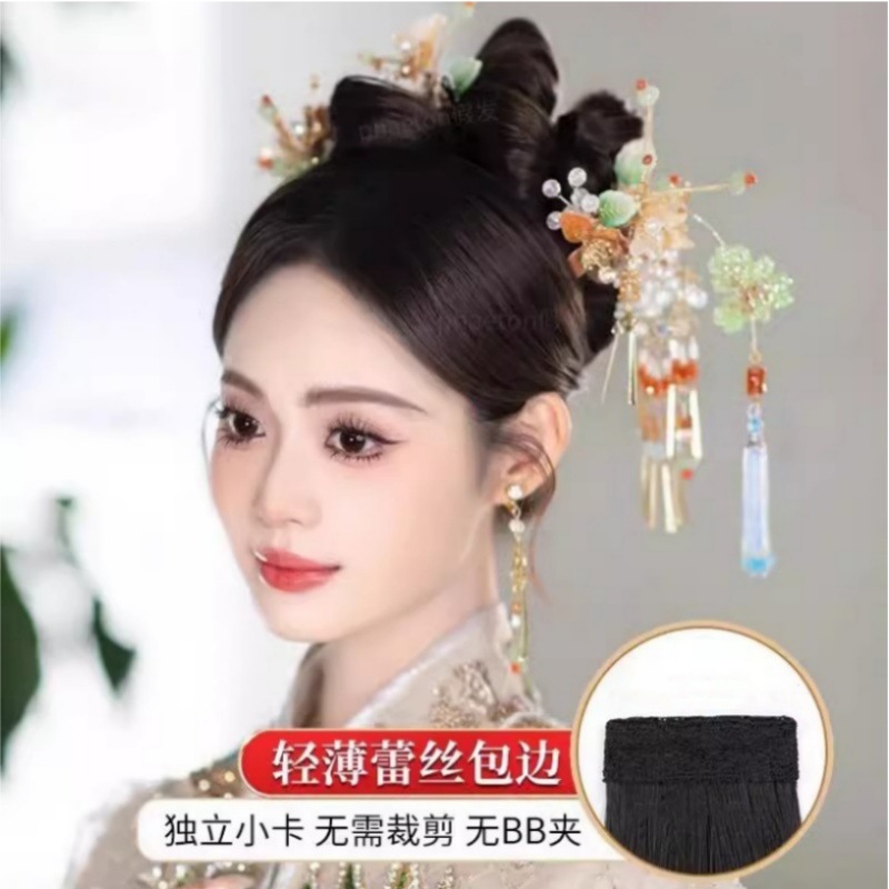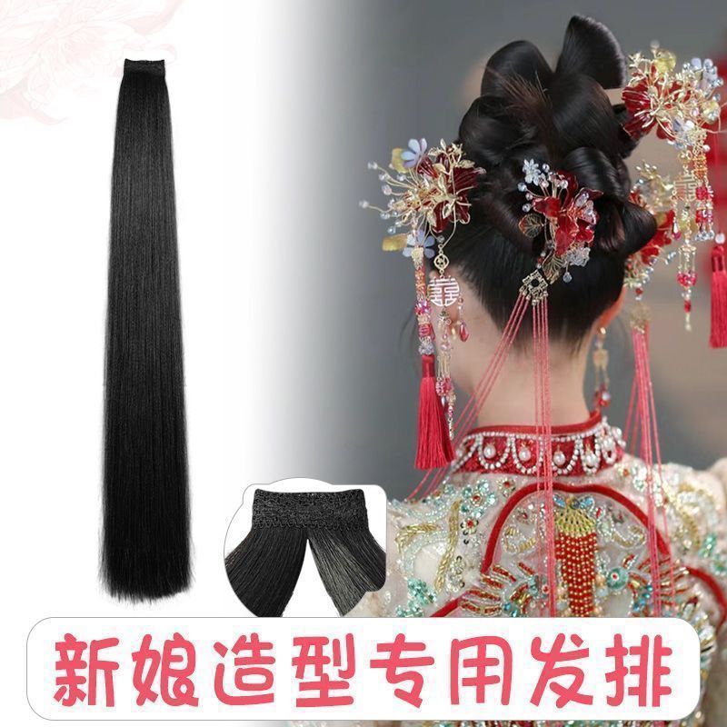 New Chinese Style Makeup Artist Special Simulation Ancient Dress Bride's Hair Pieces Naturally Split Versatile Style Hair Row Wig