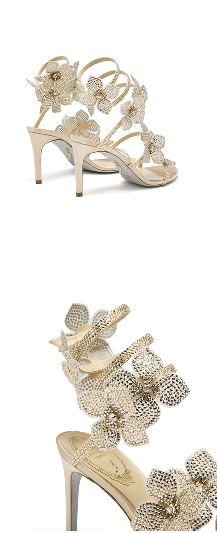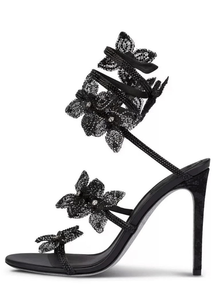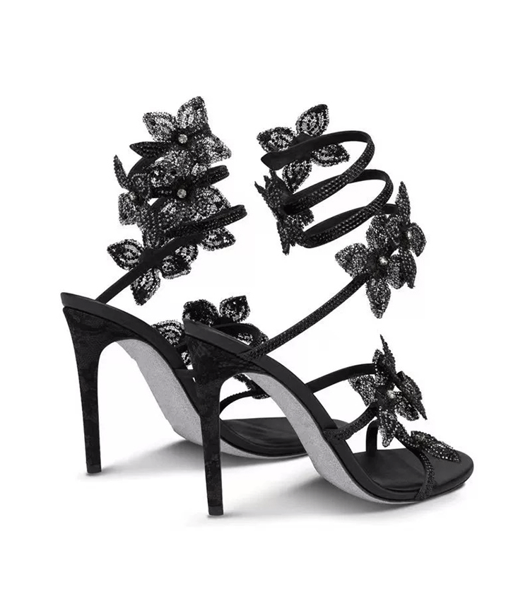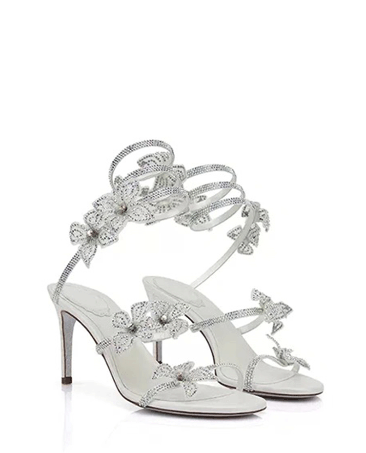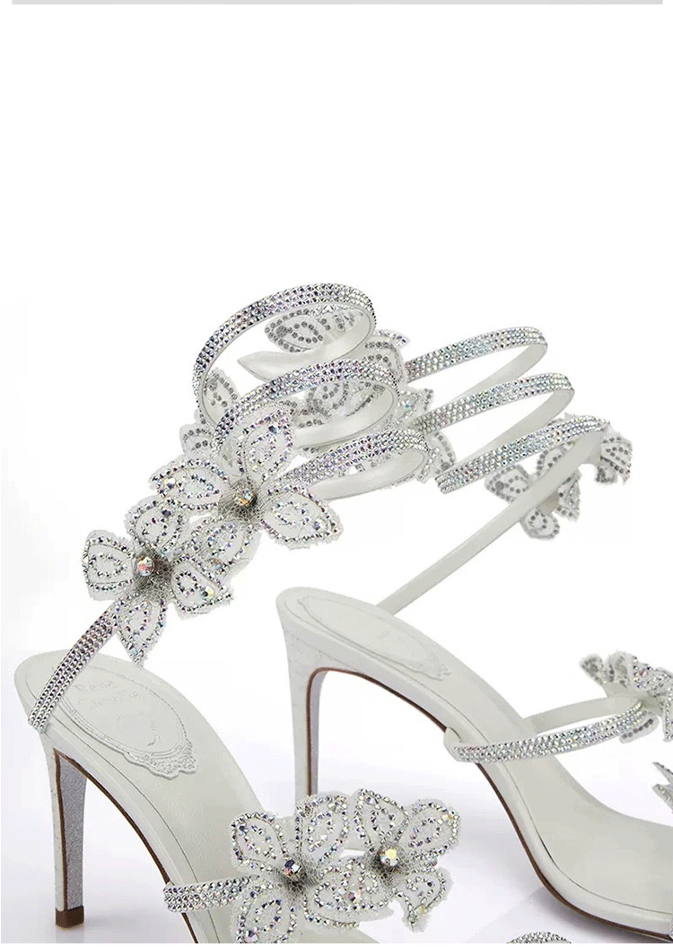 2024 foreign trade new rhinestone flower ankle wrap round high heel plus size catwalk silver soles with sandals