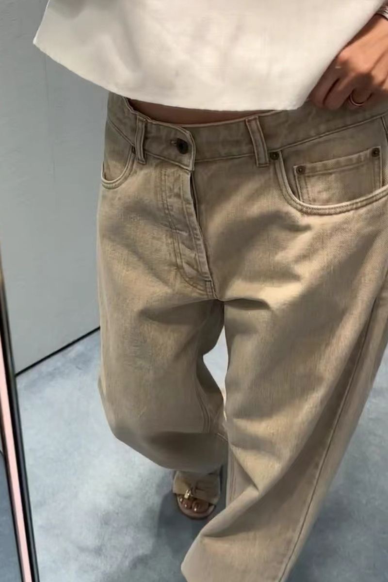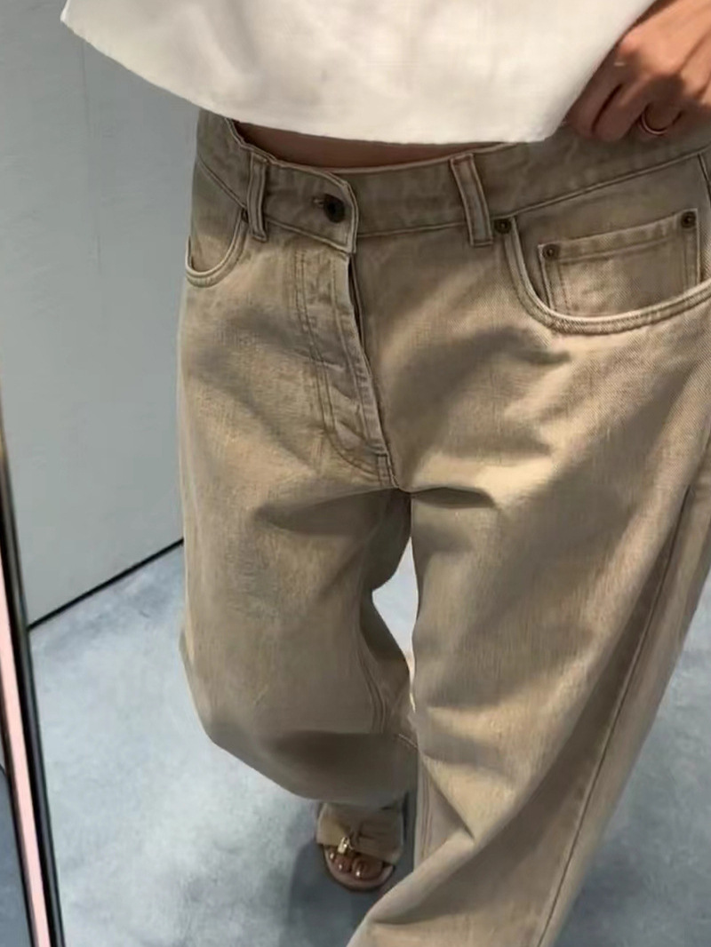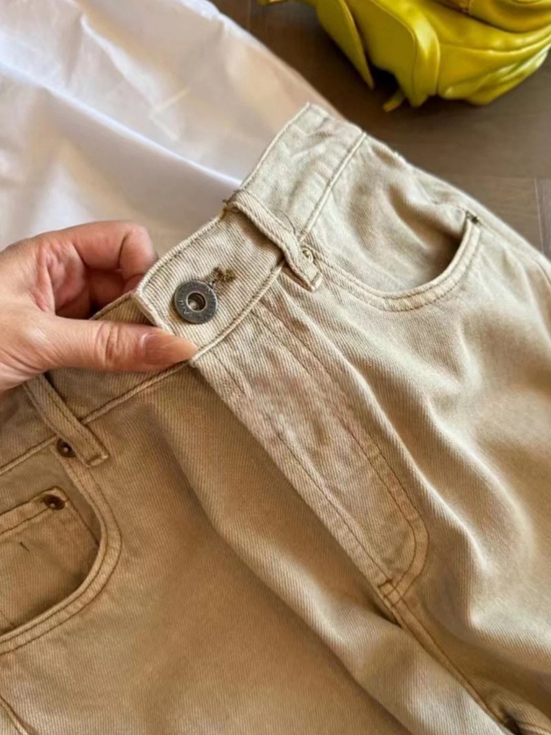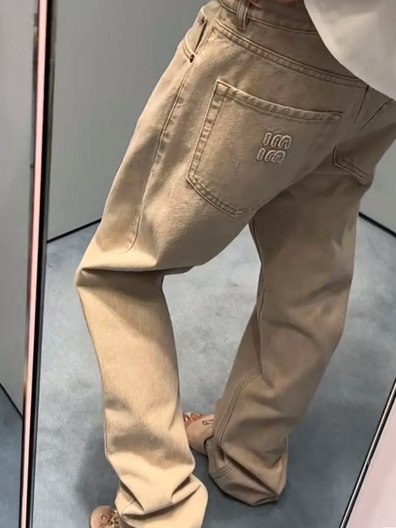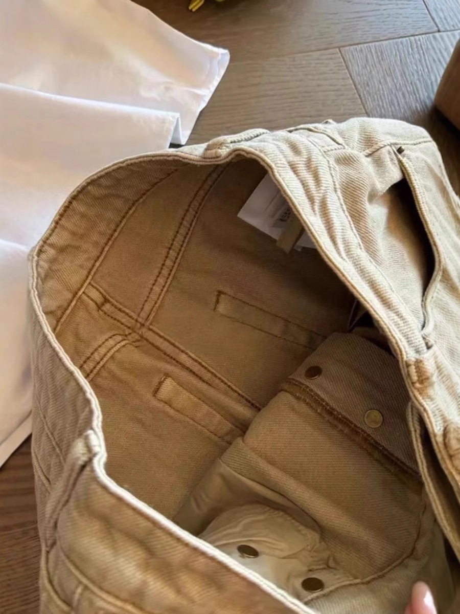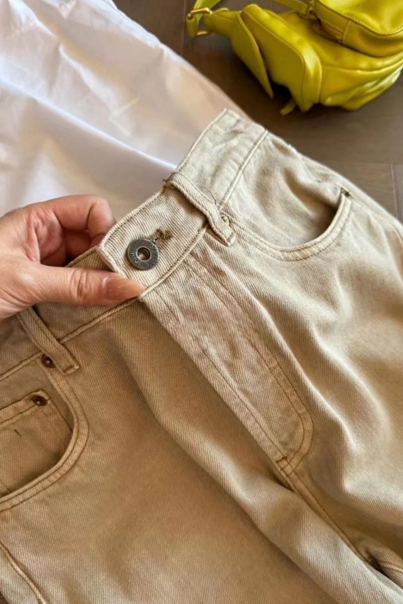 Khaki Jeans for Women in Autum, Japanese Style Style Casual High-Waisted Loose Wide-Leg Drapedy Straight-Leg Floor-Length Pants That Show Your Legs Longer