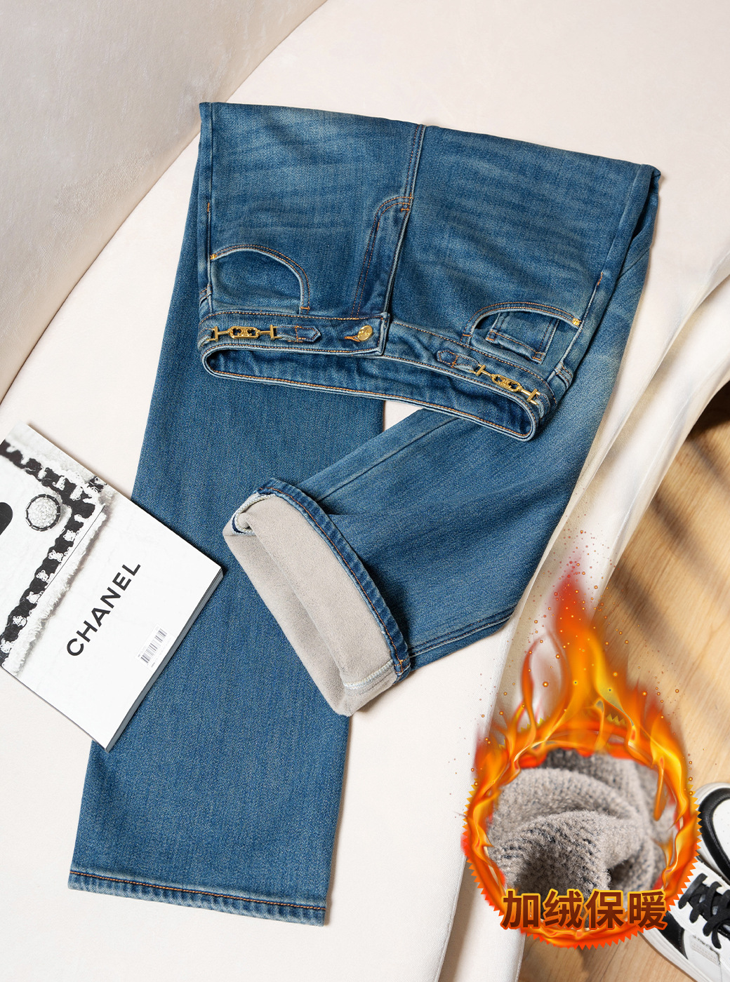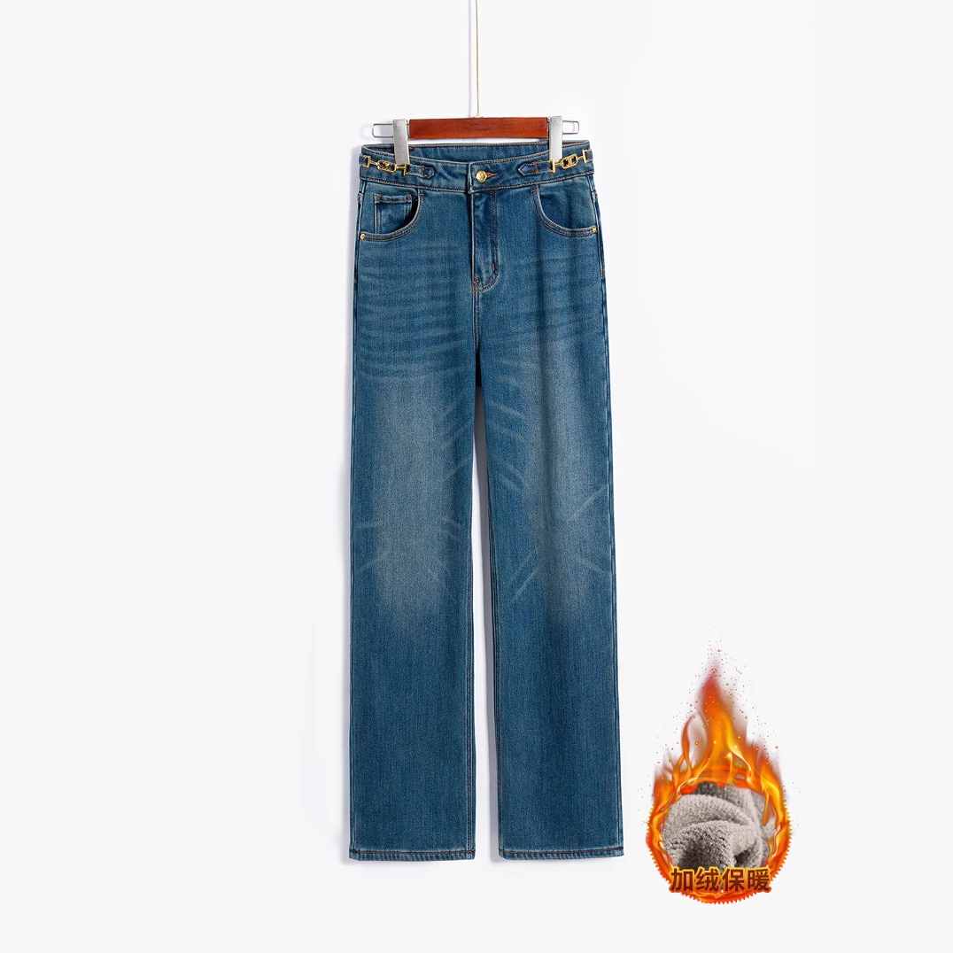 High Waist fleece-lined Thickened Narrow Wide Leg Jeans Women's 2024 Winter New High Waist Elastic Slimming Straight