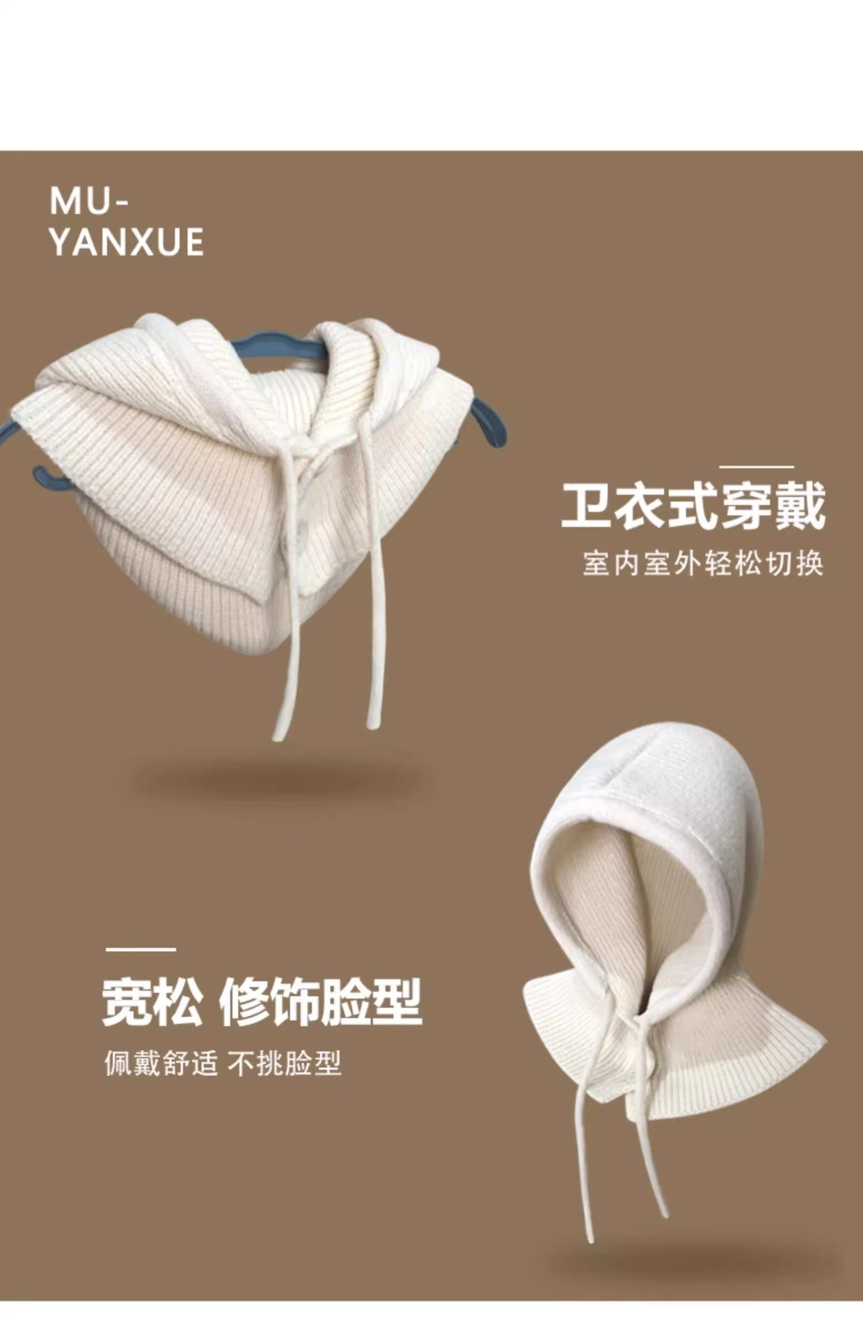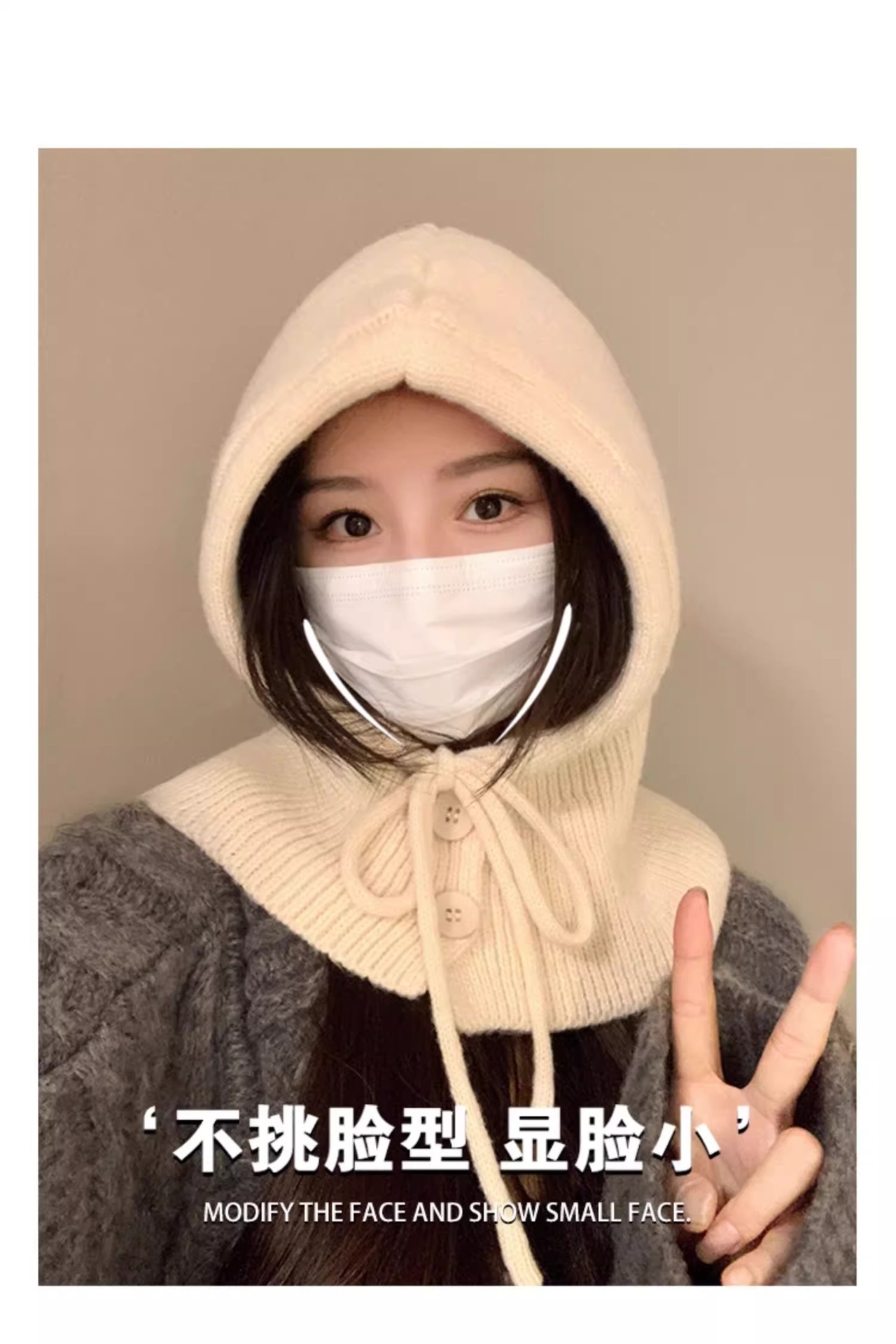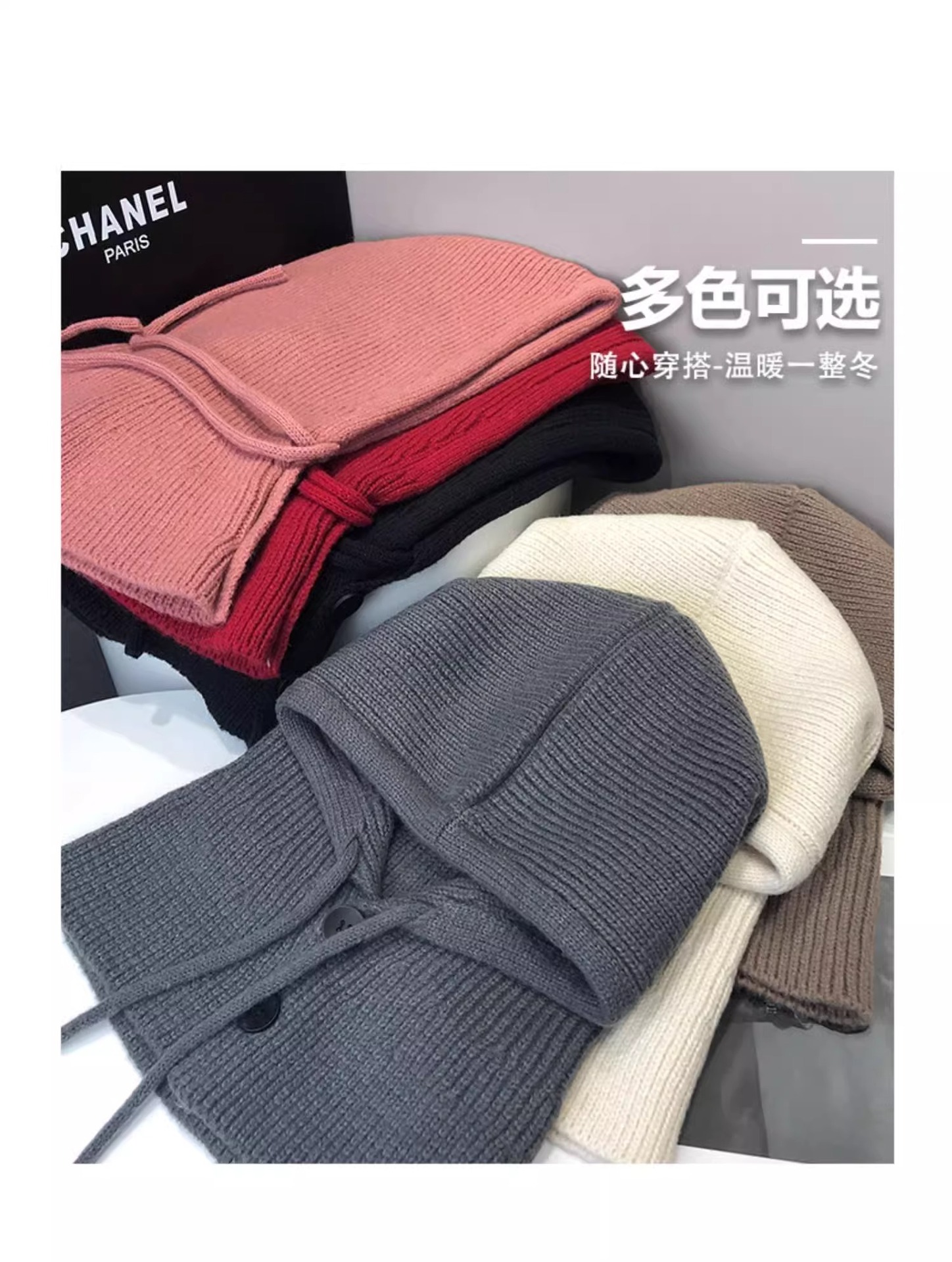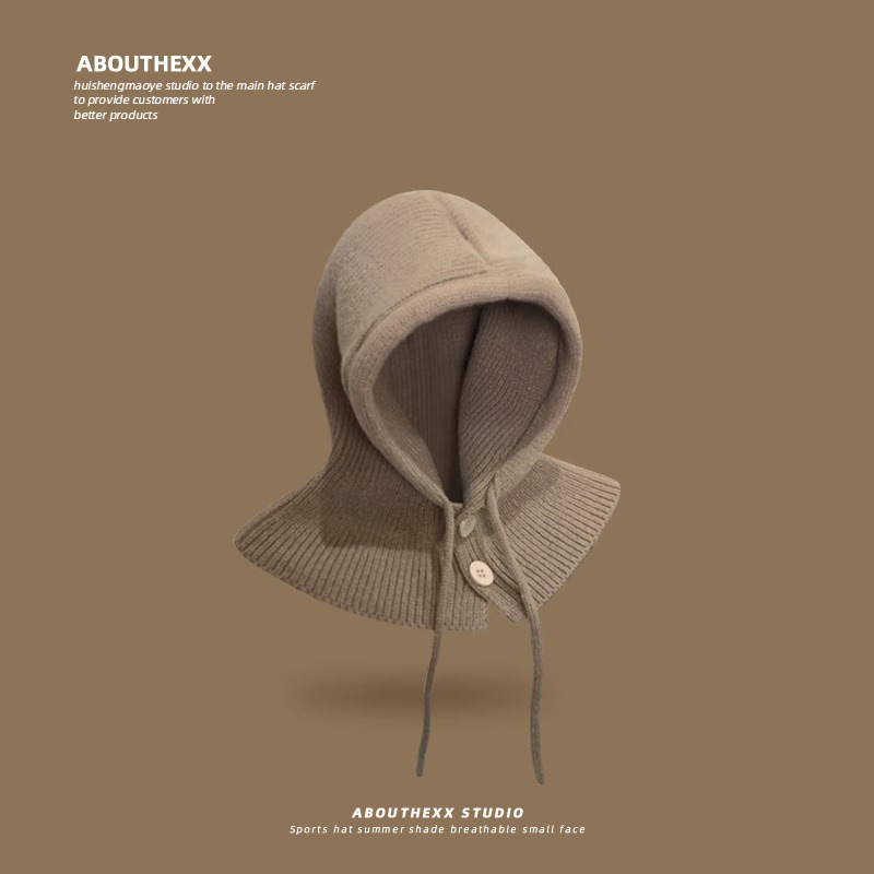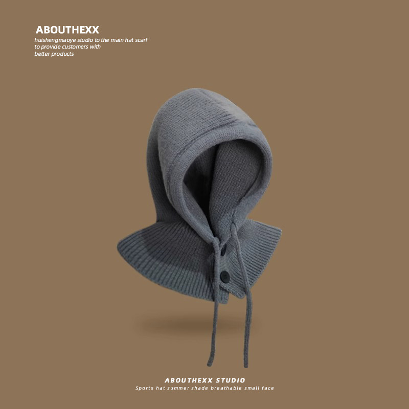 Balaclava Hat Women's Autumn and Winter Warm Knitted Hat Scarf One-piece Hooded Scarf Ear Protecting Wool Hat for Men