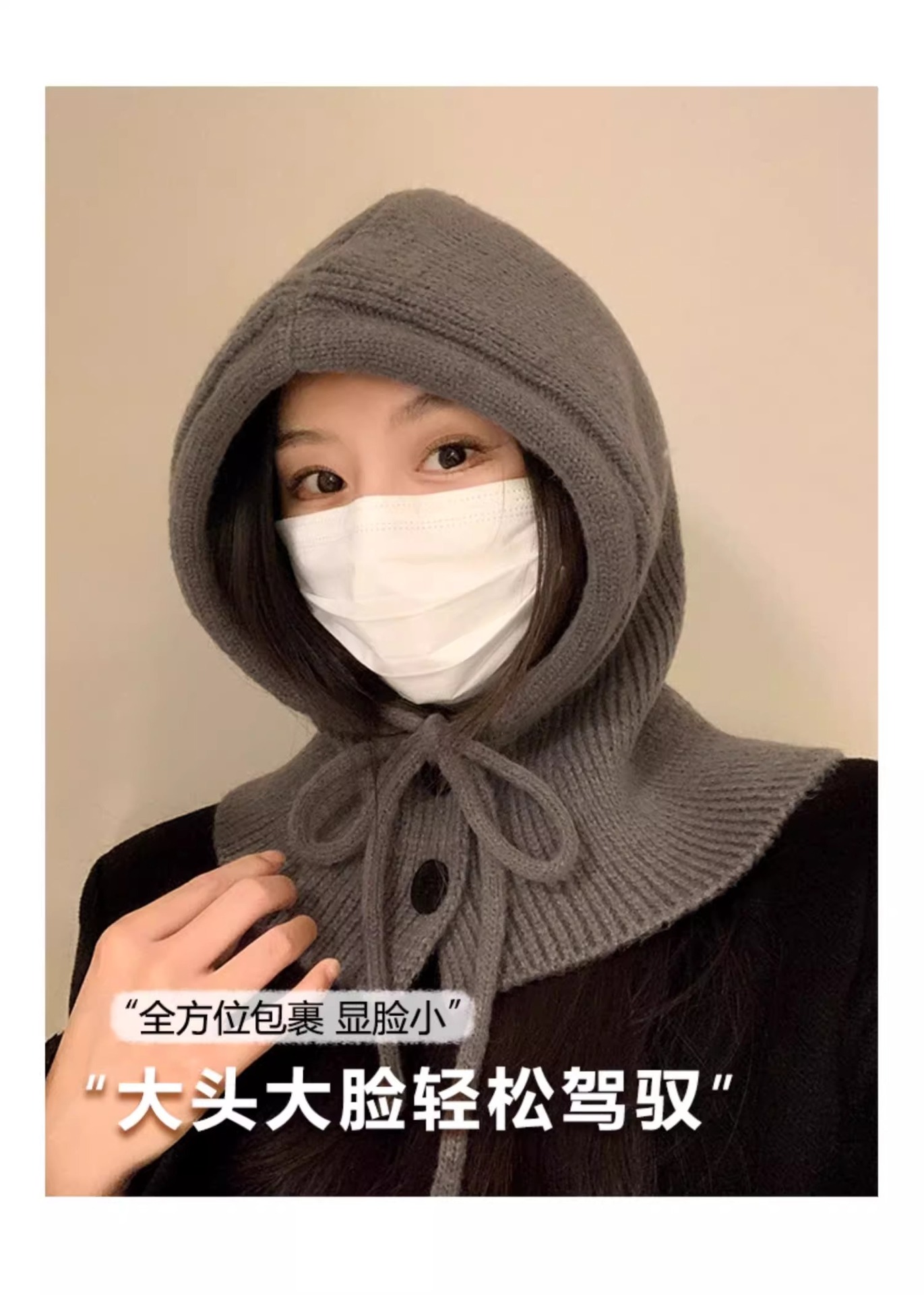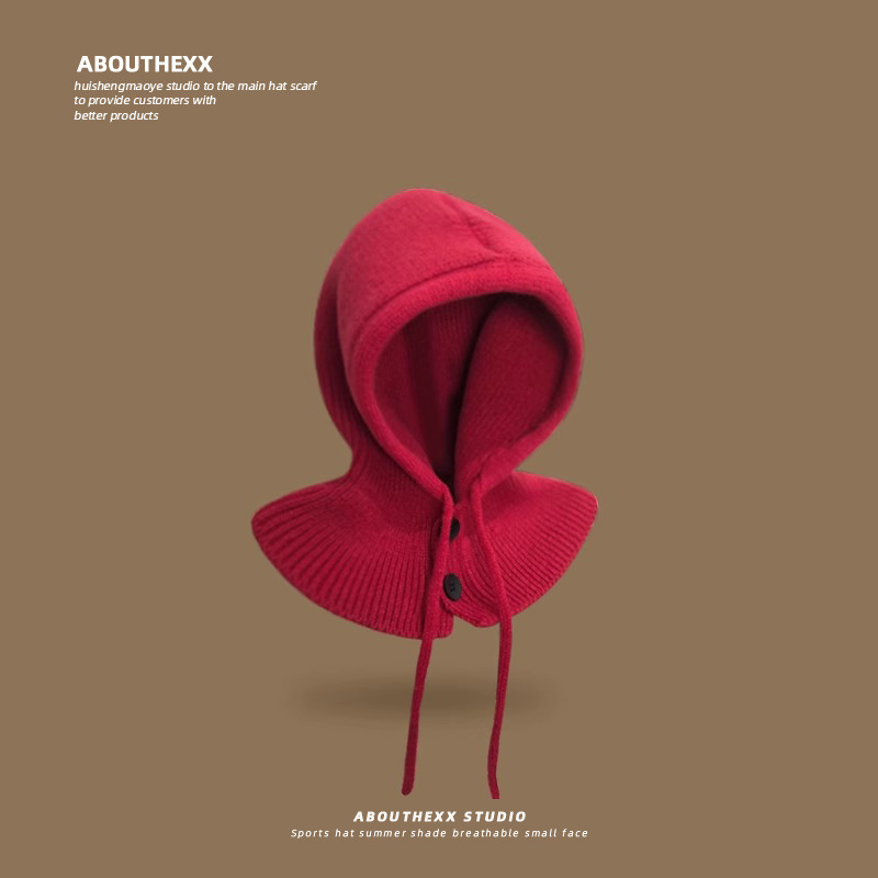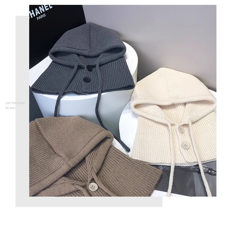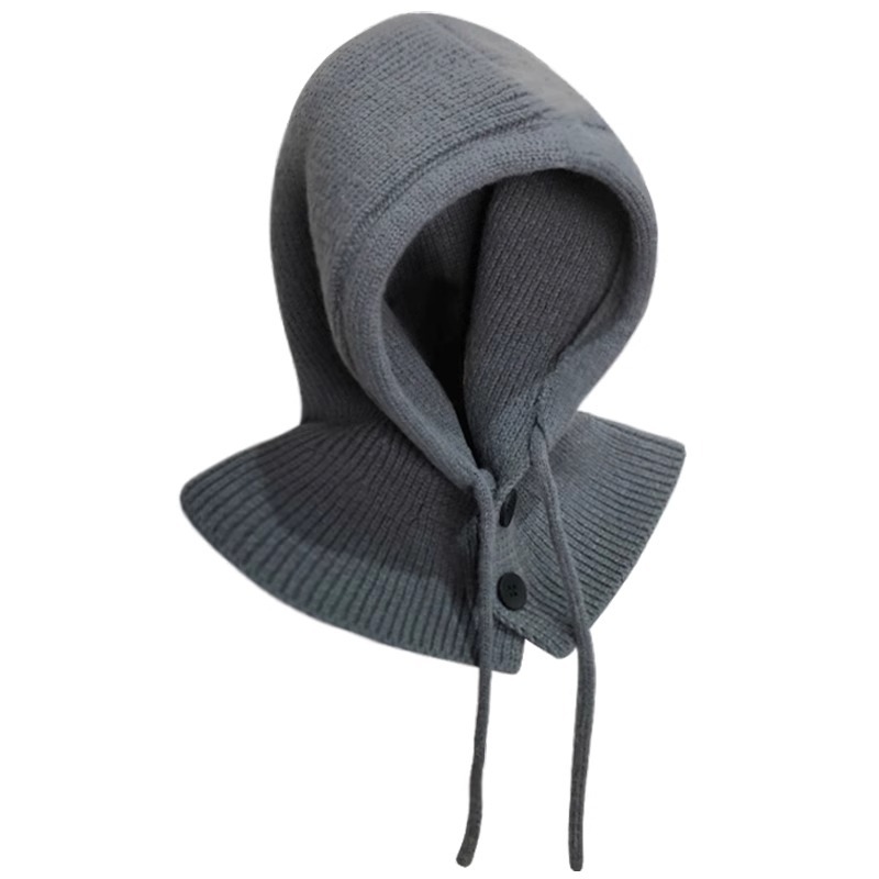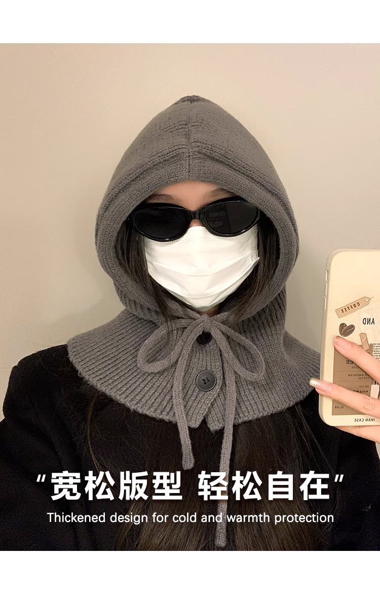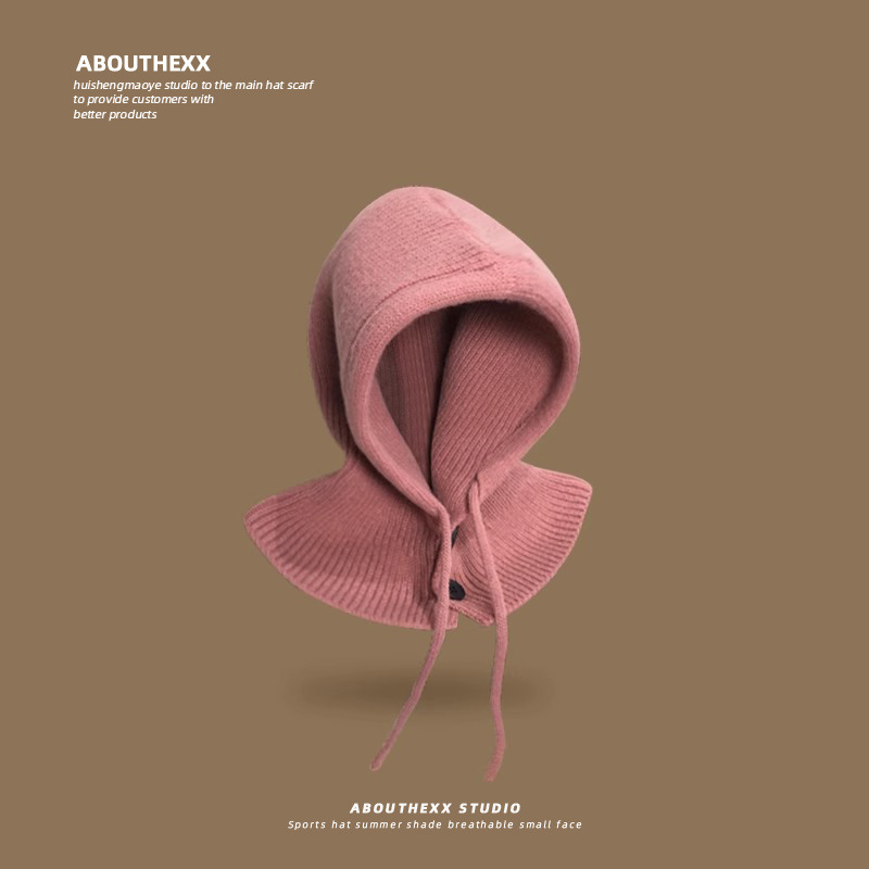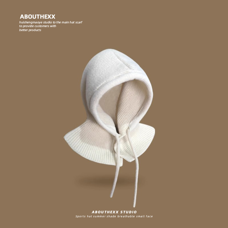 Balaclava Hat Women's Autumn and Winter Warm Knitted Hat Scarf One-piece Hooded Scarf Ear Protecting Wool Hat for Men